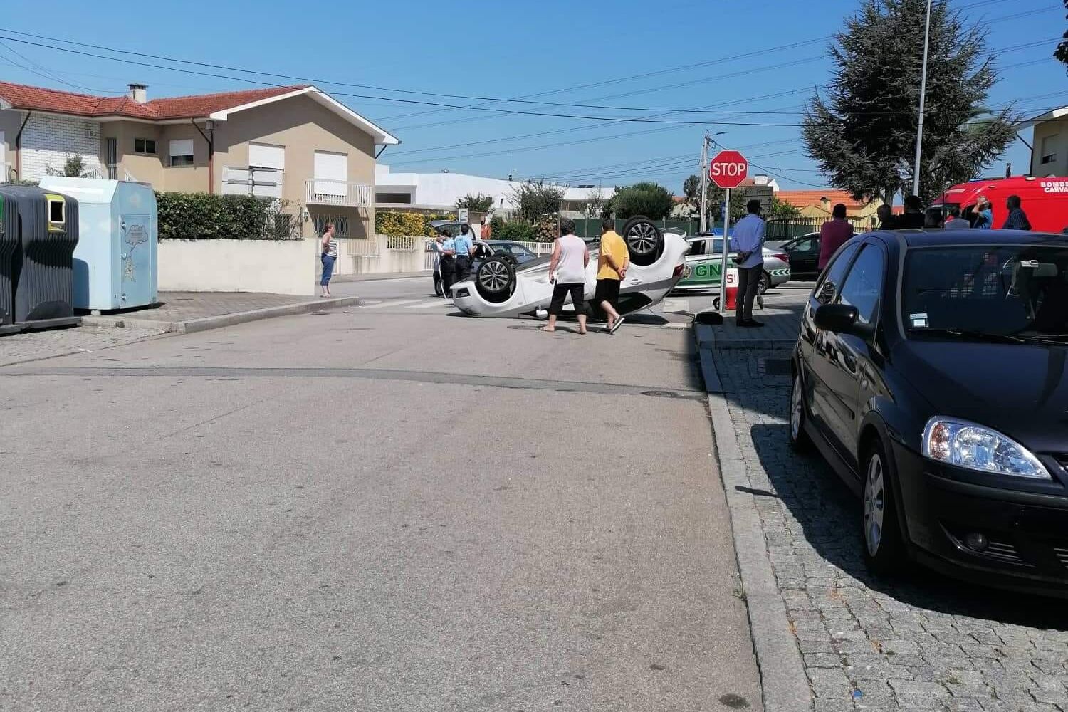 O alerta foi dado, cerca das 11h30, para os bombeiros dos Carvalhos, para um acidente rodoviário no cruzamento da Rua da Boavista com a rua das Candeias, em Grijó.
