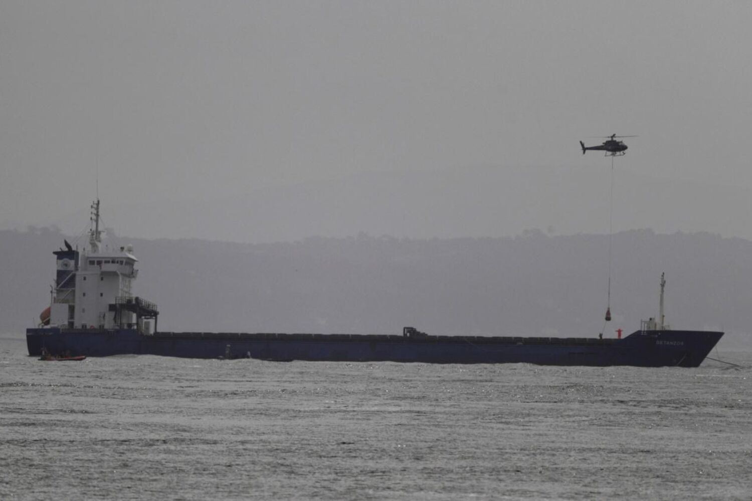 Cargueiro vai ser rebocado para o Beato, onde será inspecionado.