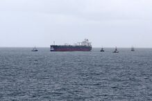 O petroleiro encalhado desde sábado junto à marina de Cascais foi desencalhado na tarde deste domingo, com a ajuda de sete rebocadores.