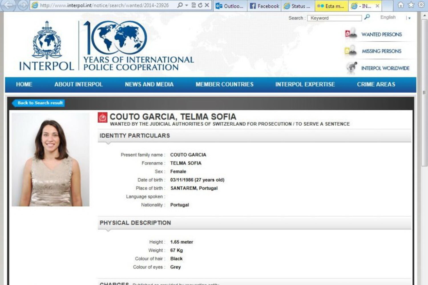 Figurou na lista dos criminosos procurados pela Interpol até que, em 2014, Telma Garcia foi detida no Brasil. A assistente médica, natural de Santarém, fugiu para aquele país após tentar matar o marido belga, na Suíça. A portuguesa foi agora condenada em terras helvéticas a uma pena de 13 anos de prisão.