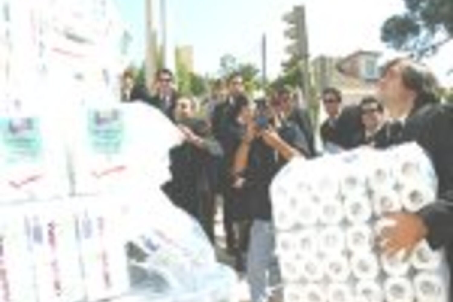 Assim quiseram mostrar que a verba das propinas não é aplicada com o objectivo de incrementar a qualidade do Ensino Superior, mas em "despesas correntes", nomeadamente com papel higiénico. O monte de rolos serviu ainda, no entender dos estudantes que se deslocaram desde Coimbra, como forma de pagamento daquela taxa.