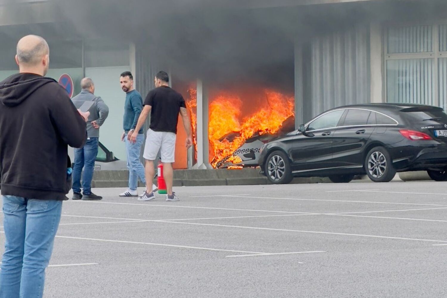 O alerta foi dado, cerca das 11h00, para os bombeiros de Aveiro Novos, para um incêndio rodoviário, numa garagem, no Parque de Exposições de Aveiro.