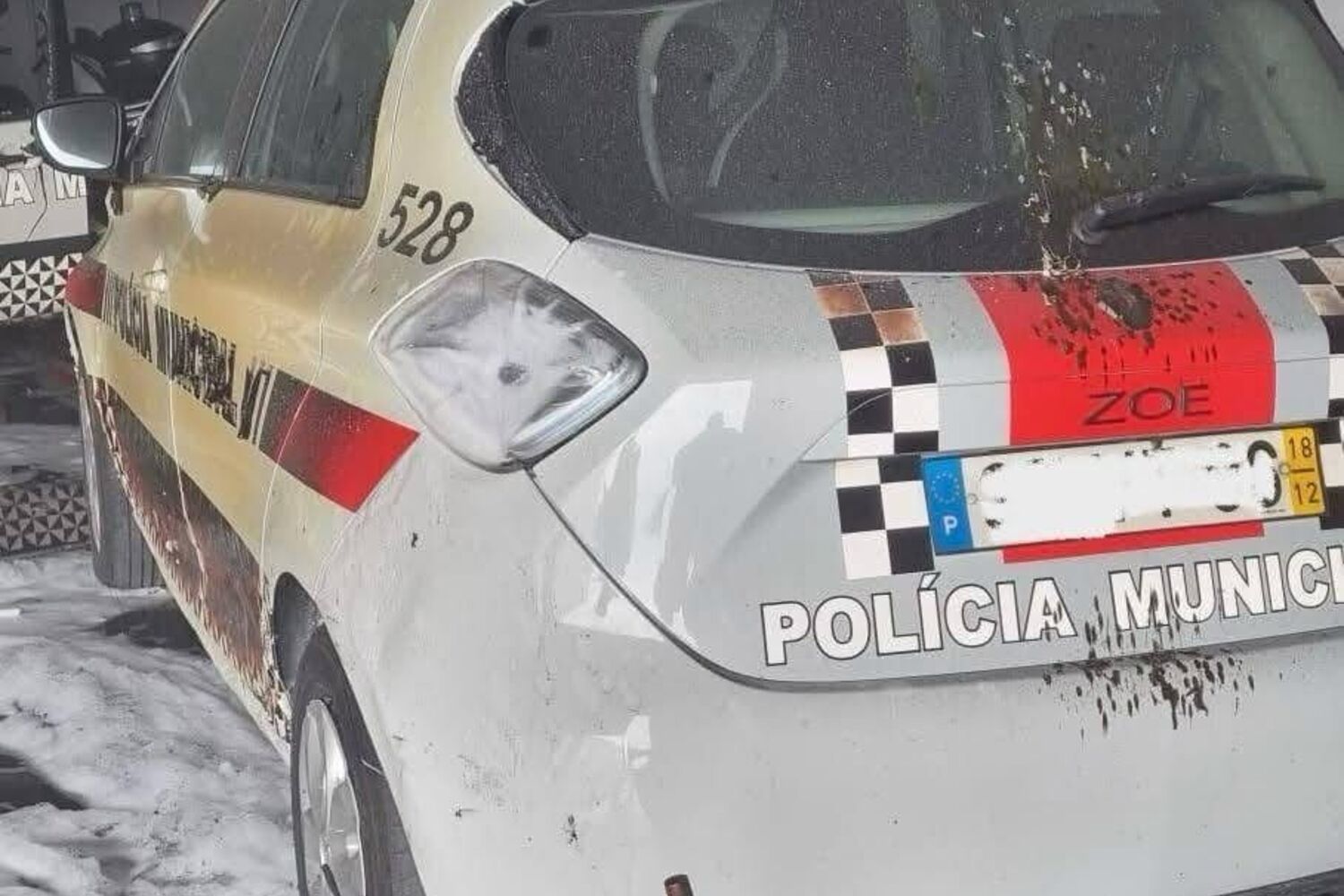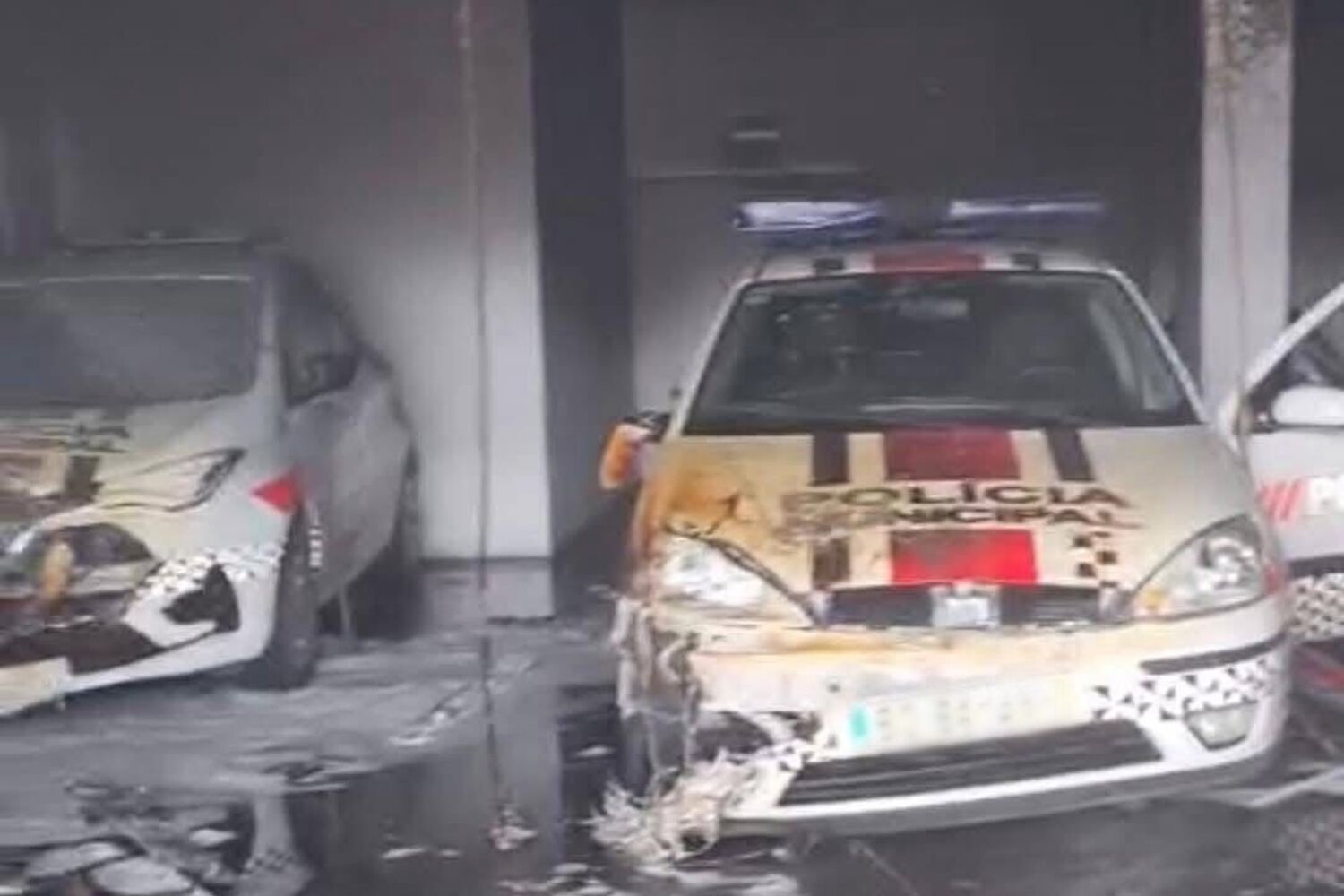 Quatro carros da polícia municipal foram totalmente destruídos, esta manhã de domingo, pelas chamas, em Aveiro.