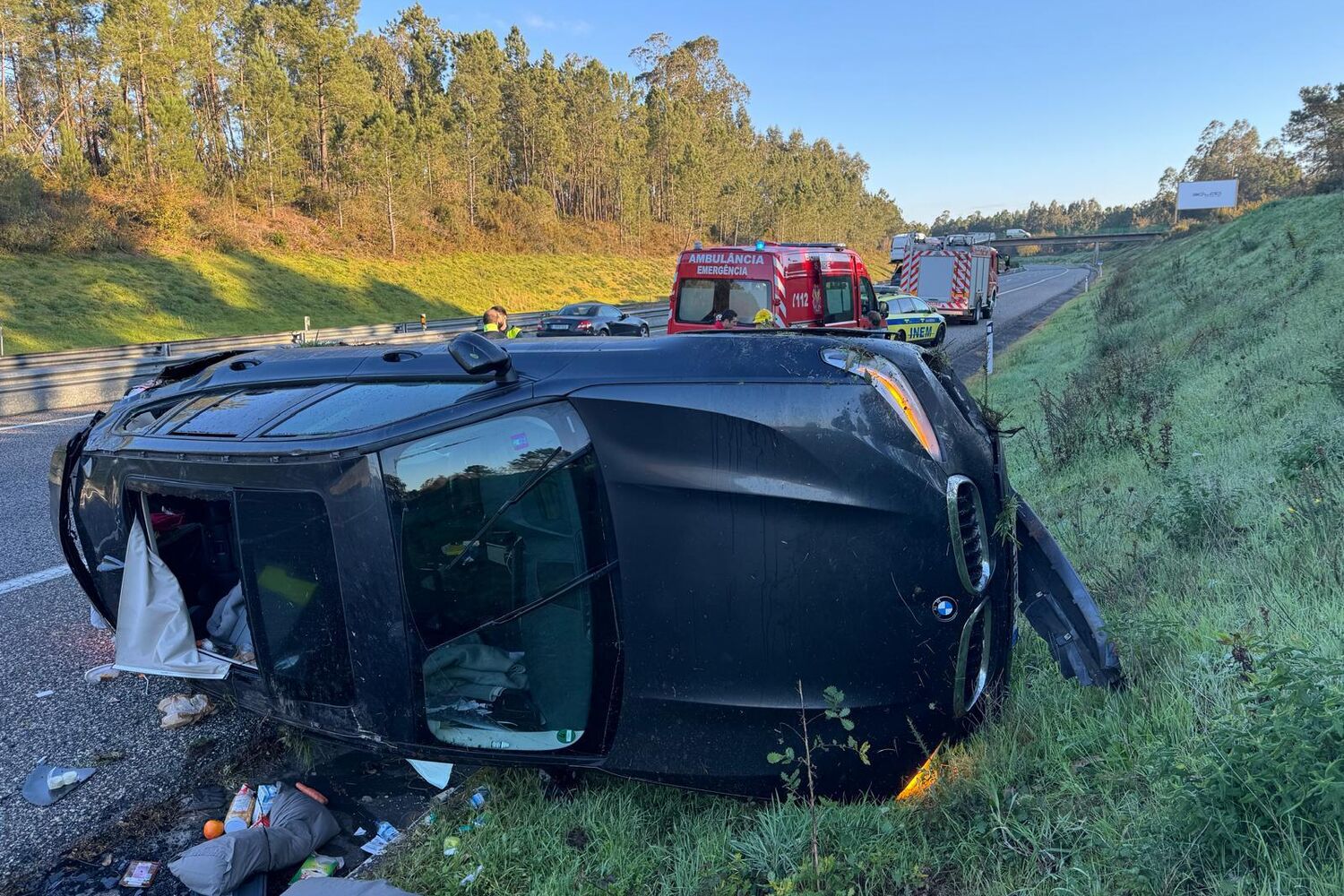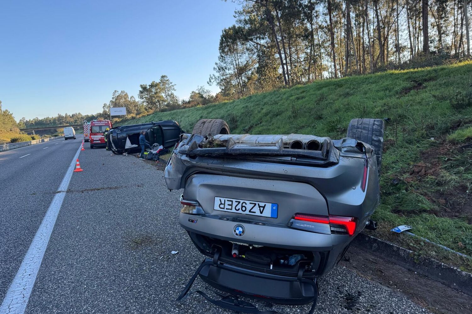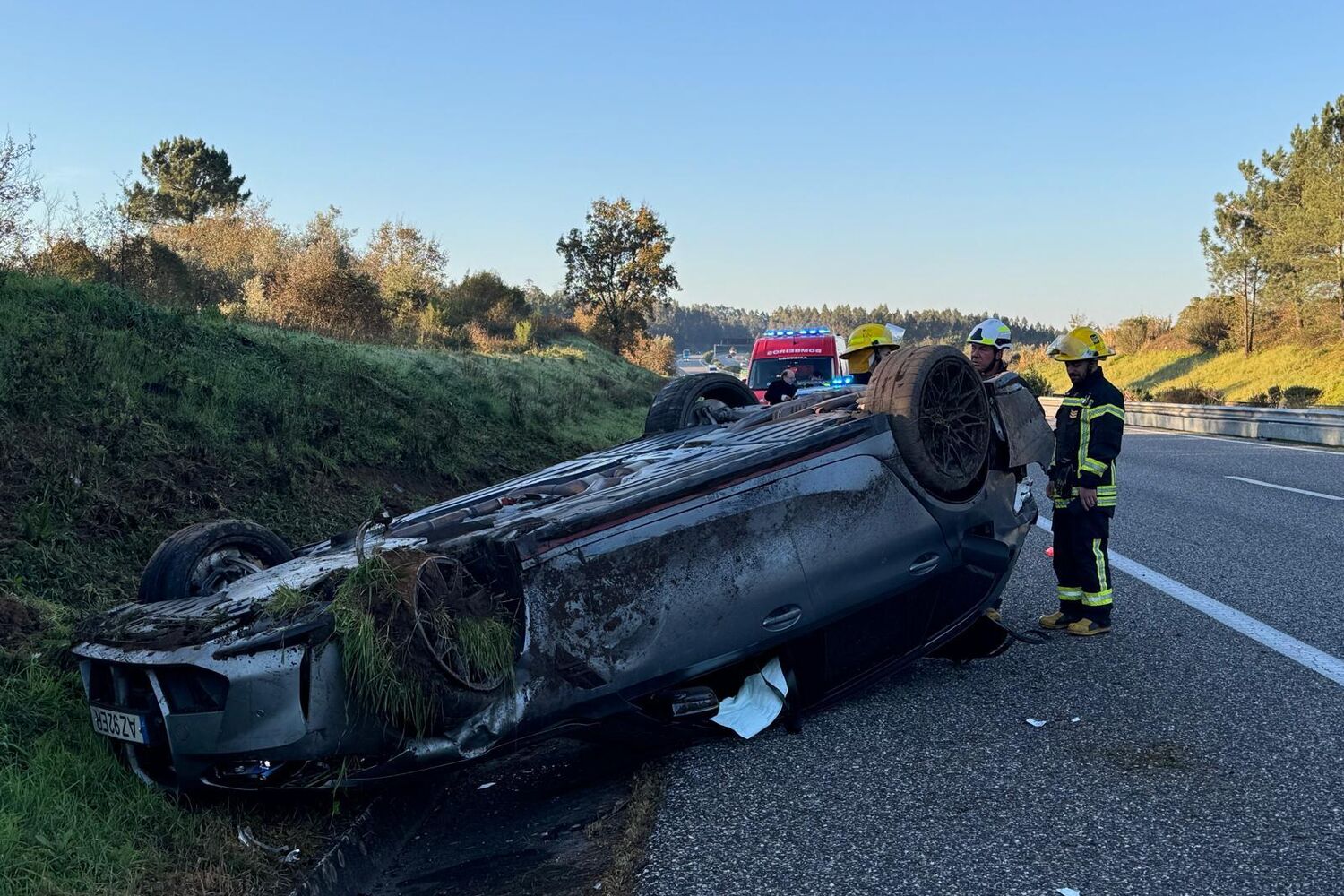 Os dois carros capotaram depois de terem colidido e ficaram fora da faixa da rodagem. Três vítimas foram assistidas no local do acidente e um ferido teve de ser encaminhado para o hospital.