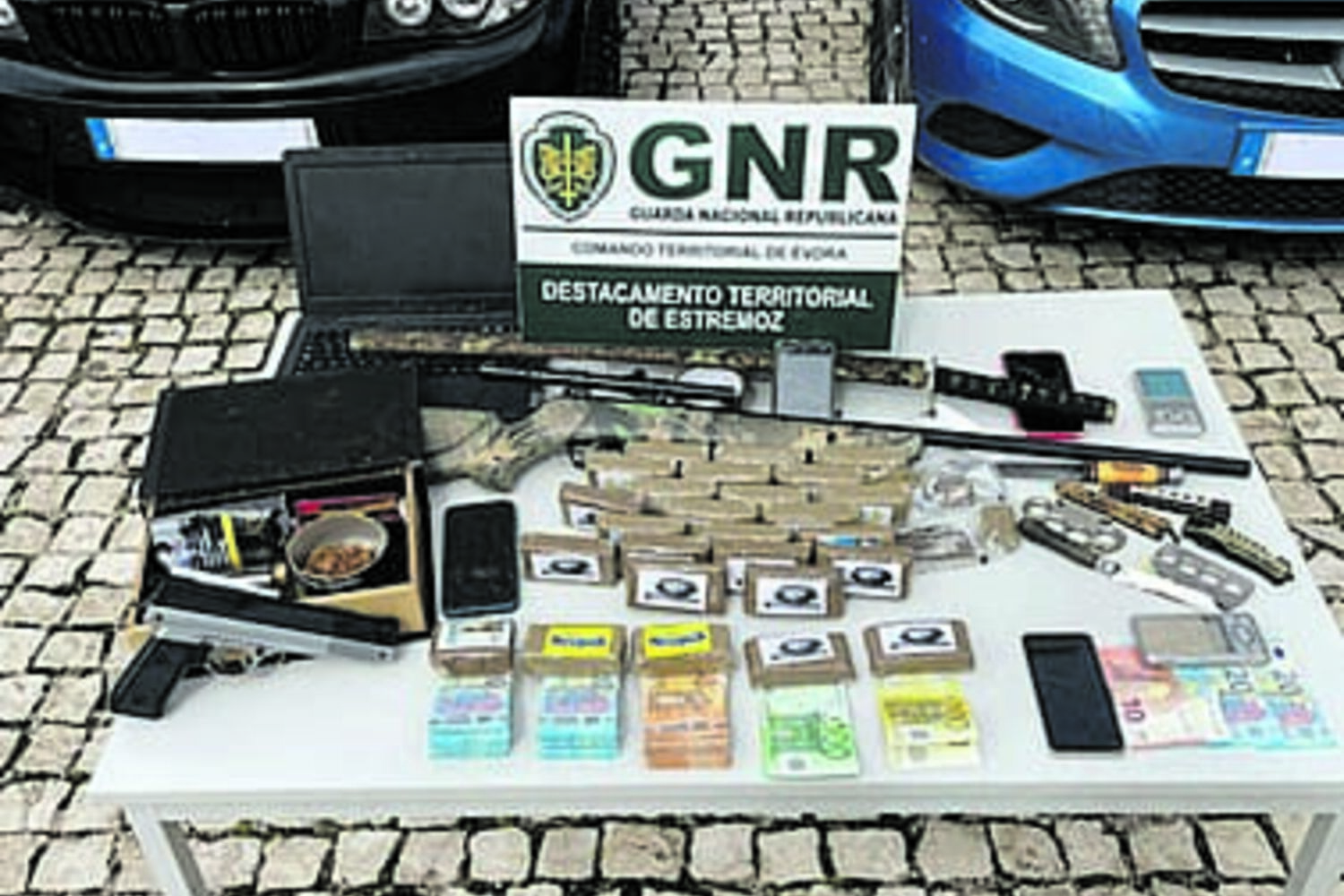 Os suspeitos, entre os 20 e os 30 anos, tinham 5398 doses de haxixe e 1,5 doses de cocaína, bem como oito veículos, duas armas de ar comprimido e 10 965 euros em numerário. Eram investigados há nove meses, num processo que culminou com os seis mandados de detenção e 23 mandados de busca.