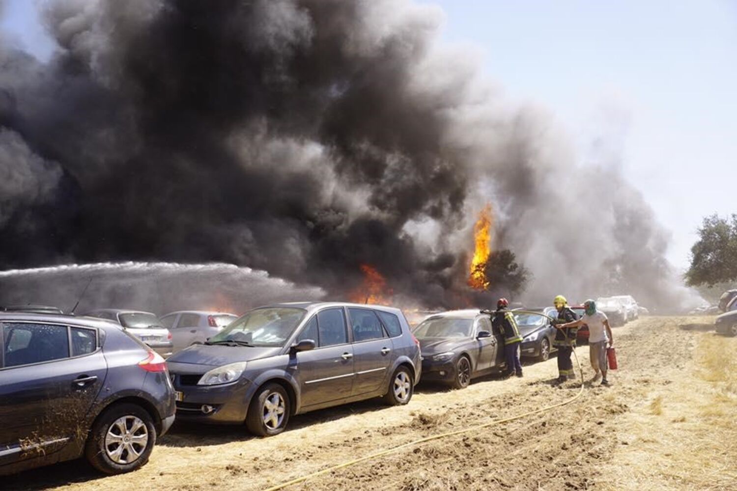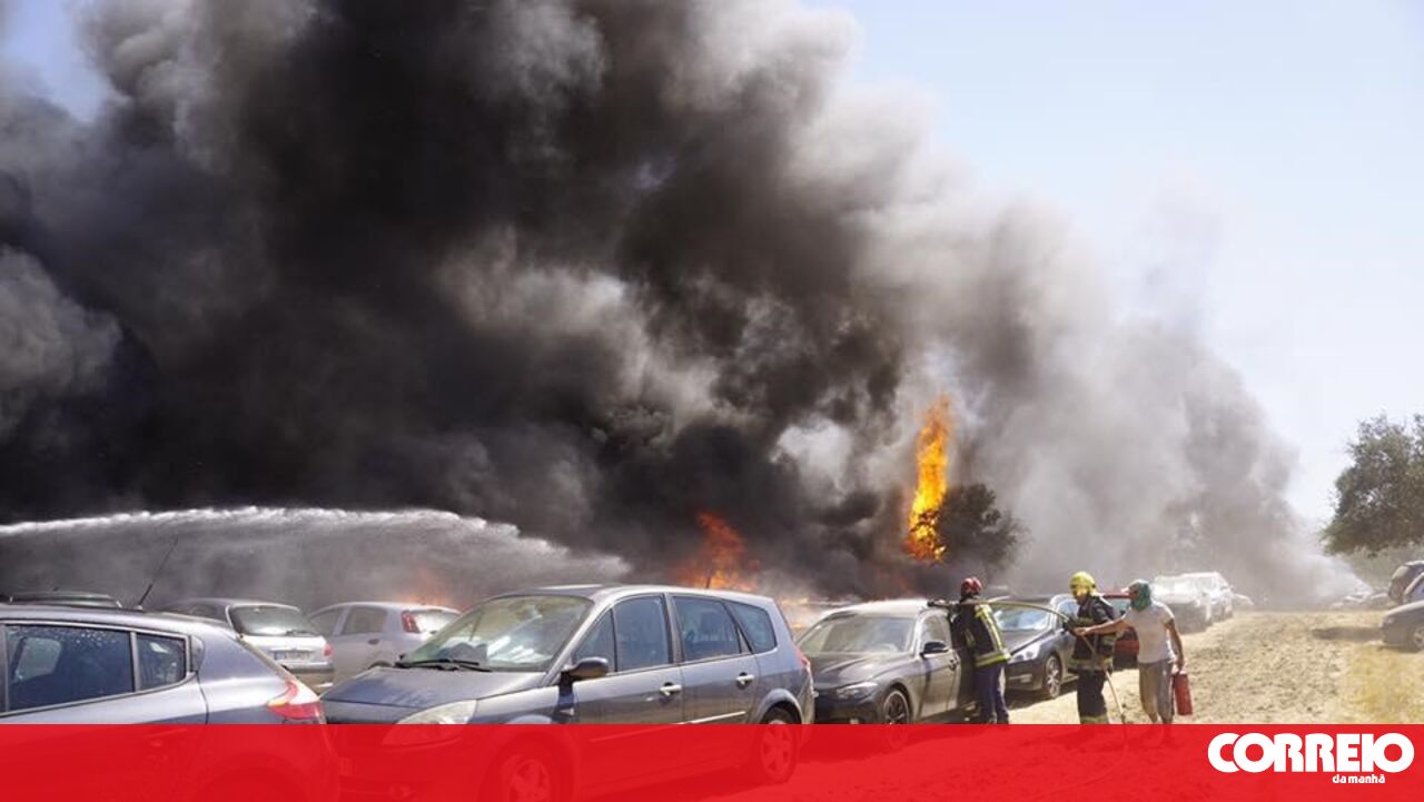 Fogo destruiu centenas de viaturas num dos parques de estacionamento.