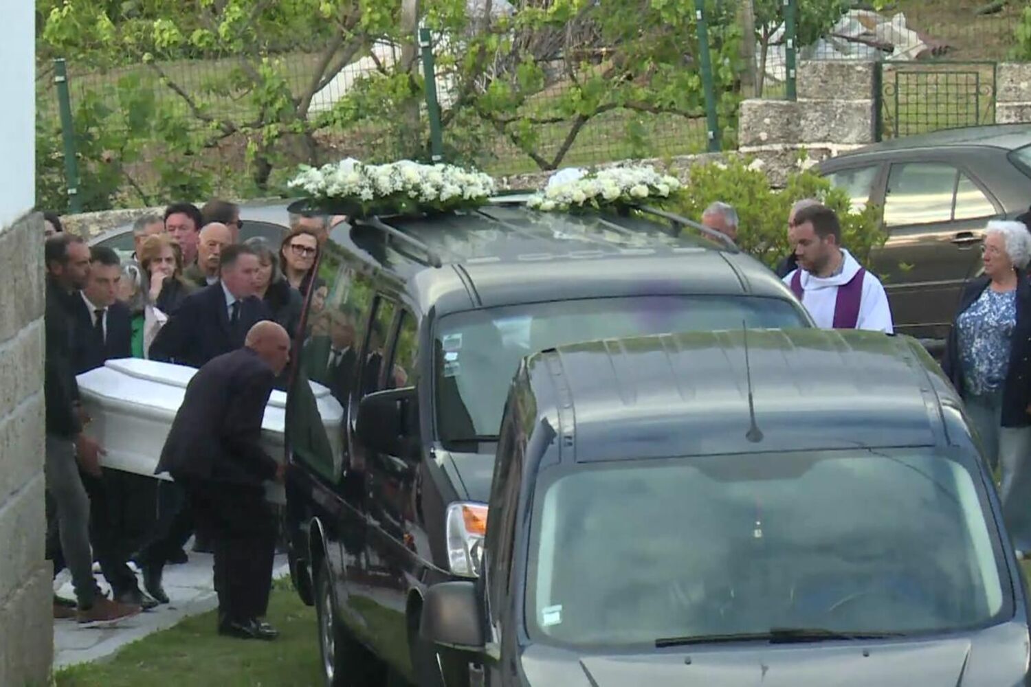 Depois da missa, o corpo foi levado para o cemitério de São Martinho, a cerca de um quilómetro da capela. Dezenas de carros seguiram em cortejo fúnebre atrás da carrinha funerária, onde os pais e os avós acompanhavam o corpo.