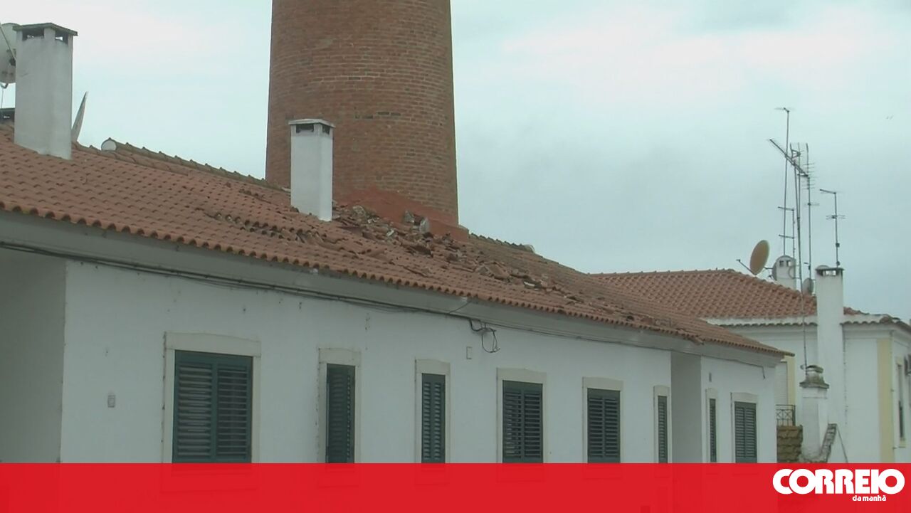 Um raio atingiu uma chaminé de uma antiga fábrica, em Alcácer do Sal, provocando danos em algumas habitações e em alguns carros, esta segunda-feira.