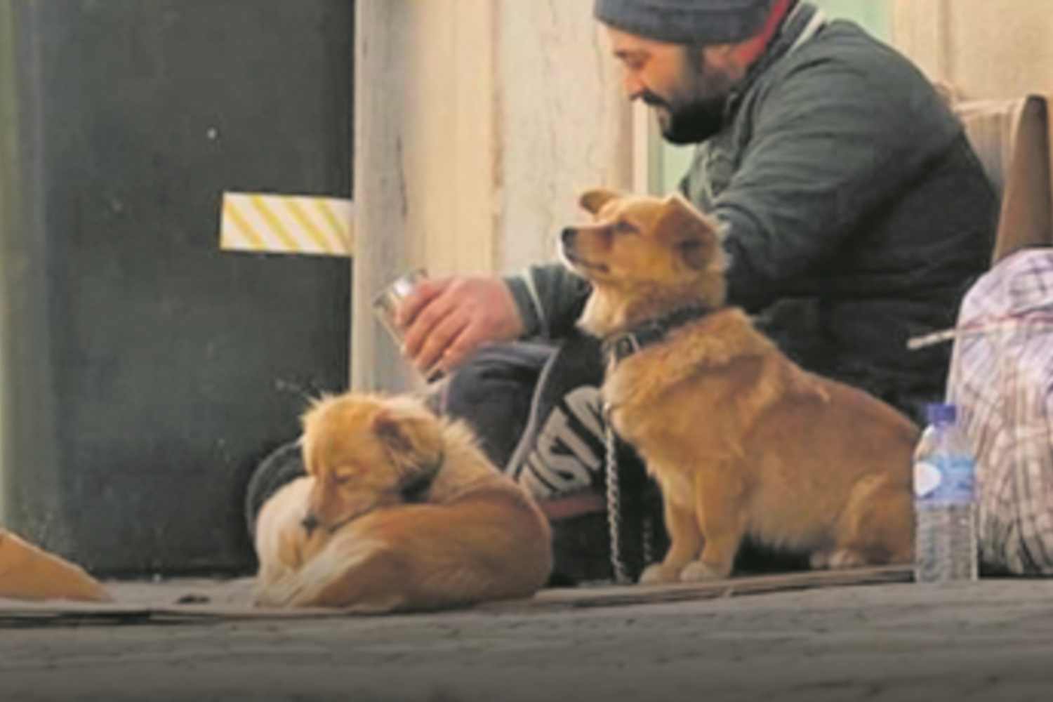 Cães e coelhos foram recolhidos da rua por autoridades. Dormem em tendas aquecidos por fogueiras