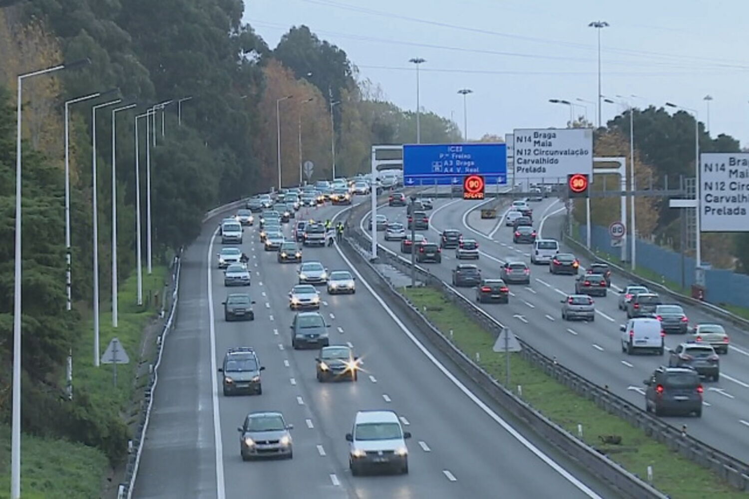 Segundo o que o CM conseguiu apurar, a circulação está cortada em duas das três vias de trânsito.