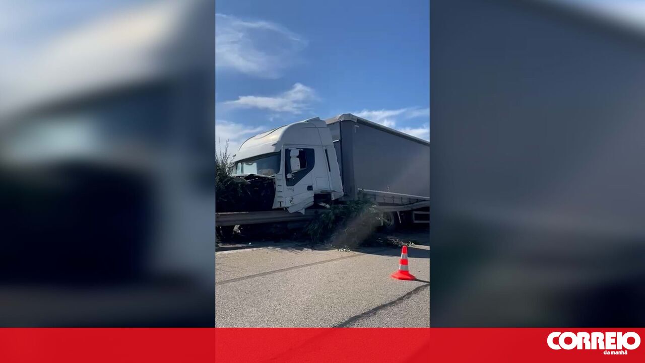 O carro ainda está no local, mas o camião já foi retirado da via.