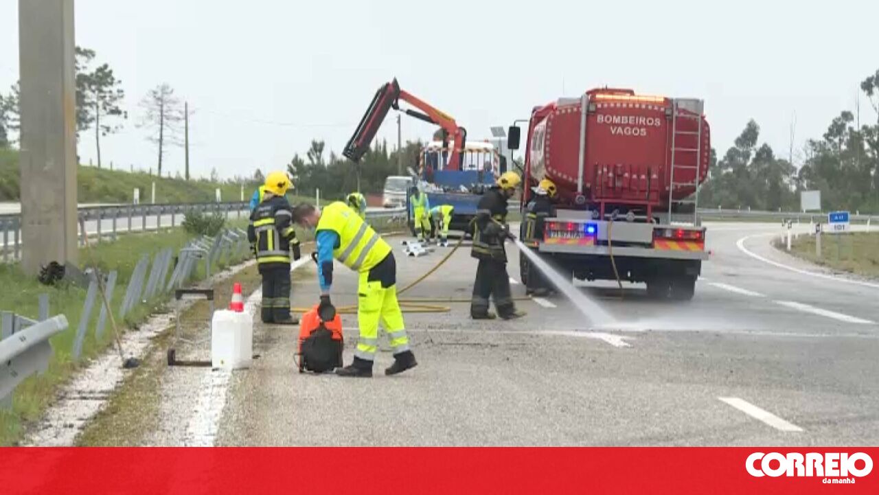 Trânsito condicionado na A17 em Vagos após despiste de camião de transporte de tintas e vernizes