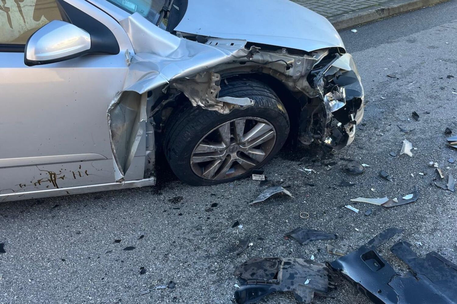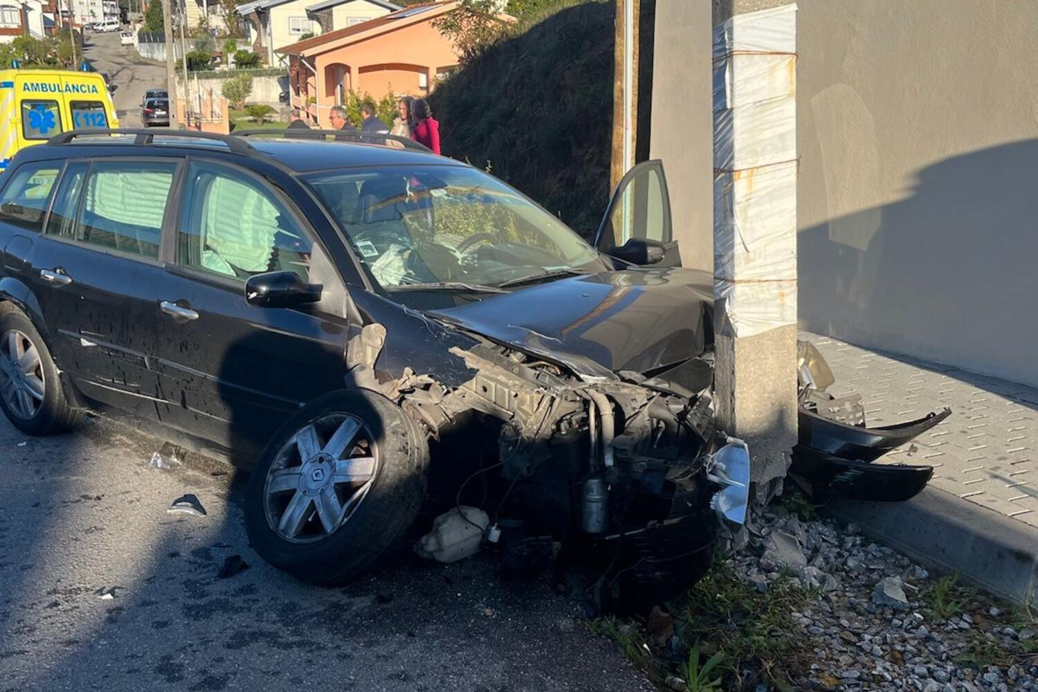 Uma das viaturas, em circunstâncias que ainda não estão apuradas, abalroou o outro carro, que estava estacionado, acabando por se despistar e colidir contra um poste eléctrico.