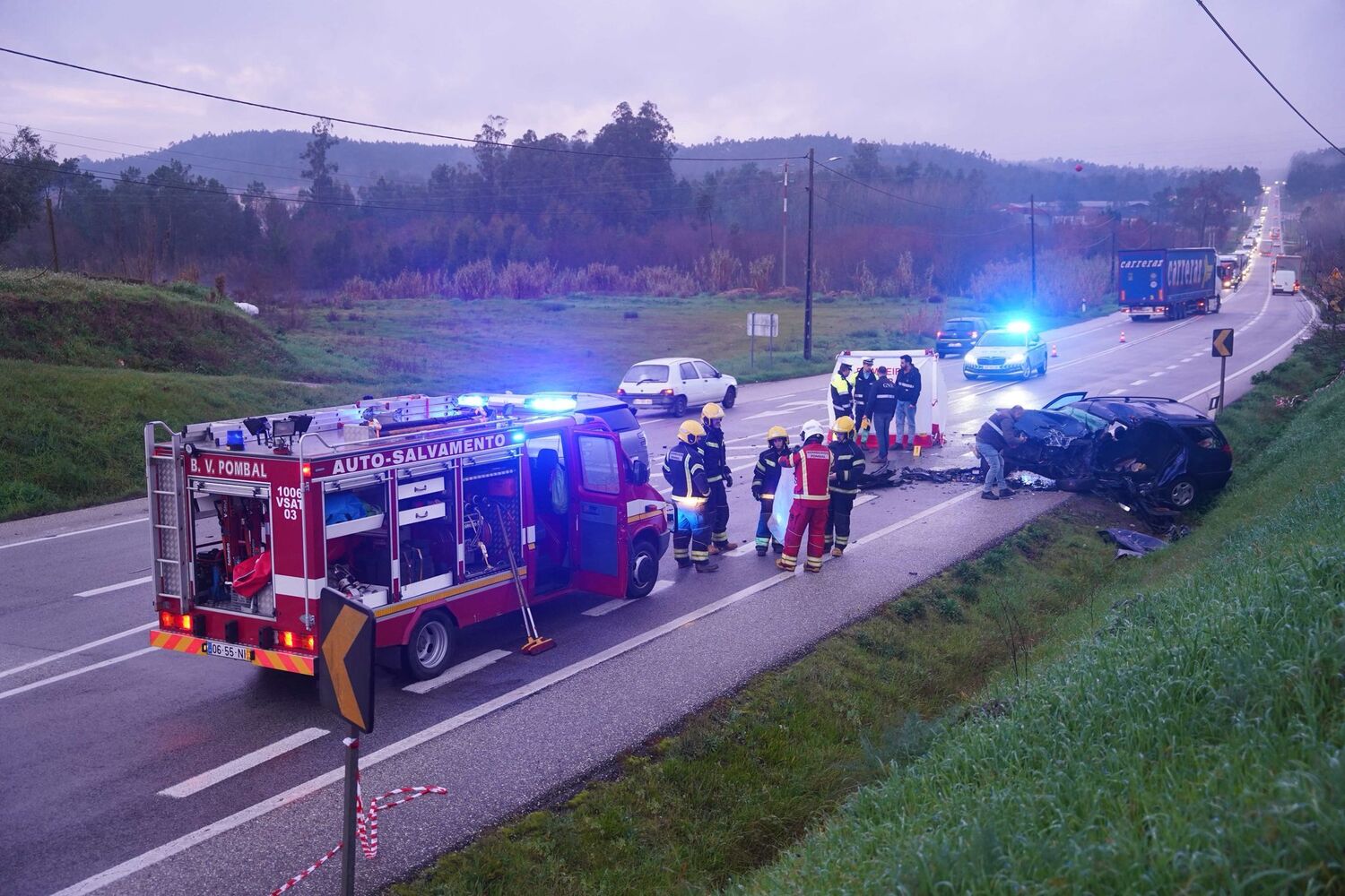 Pelas 17h20, estavam no local 34 operacionais apoiados por 16 viaturas, dos bombeiros, Instituto Nacional de Emergência Médica, GNR e Infraestruturas de Portugal. O socorro foi prestado pelos Bombeiros Voluntários de Pombal.