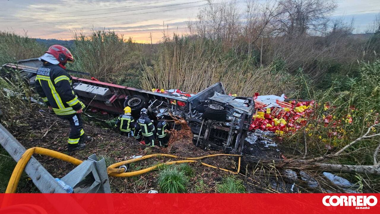 O camião circulava no sentido sul-norte e atravessou todo o IC2 após o despiste, tendo caído numa estrada em terra batida.