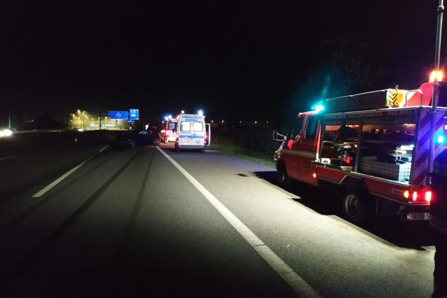 O acidente ocorreu pela 01h00, ao km 24.9, no sentido sul-norte. Foram mobilizados no socorro 17 operacionais dos bombeiros de Palmela, a viatura médica do INEM, a GNR e a concessionária Brisa.