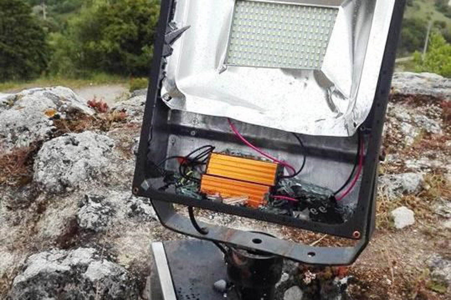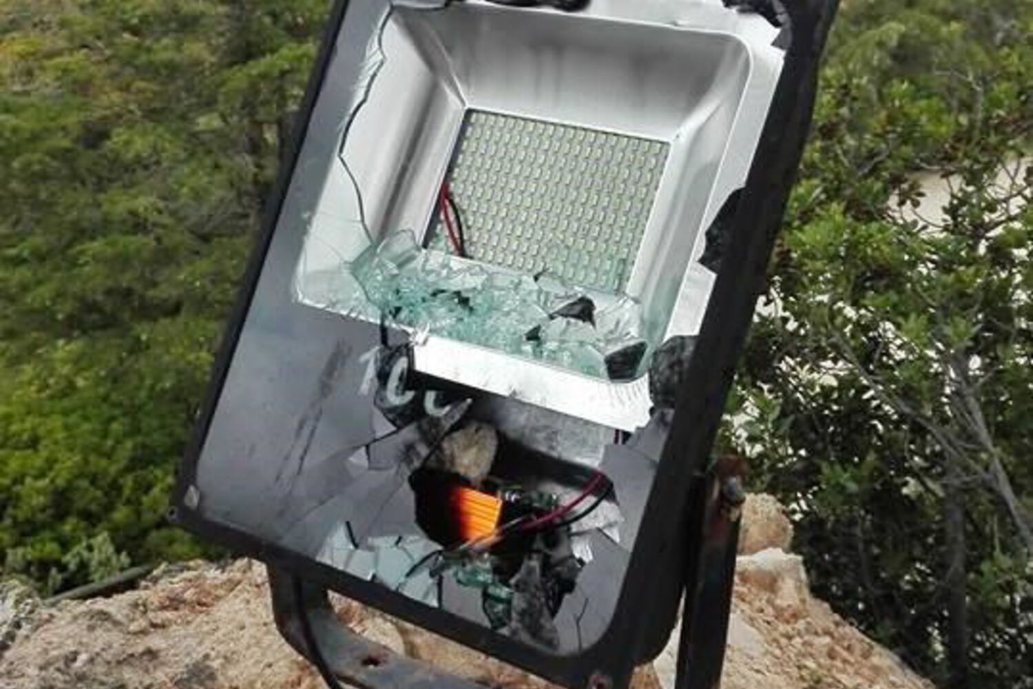 Foram destruídos 10 projetores de luz em atos de vandalismo gratuito.