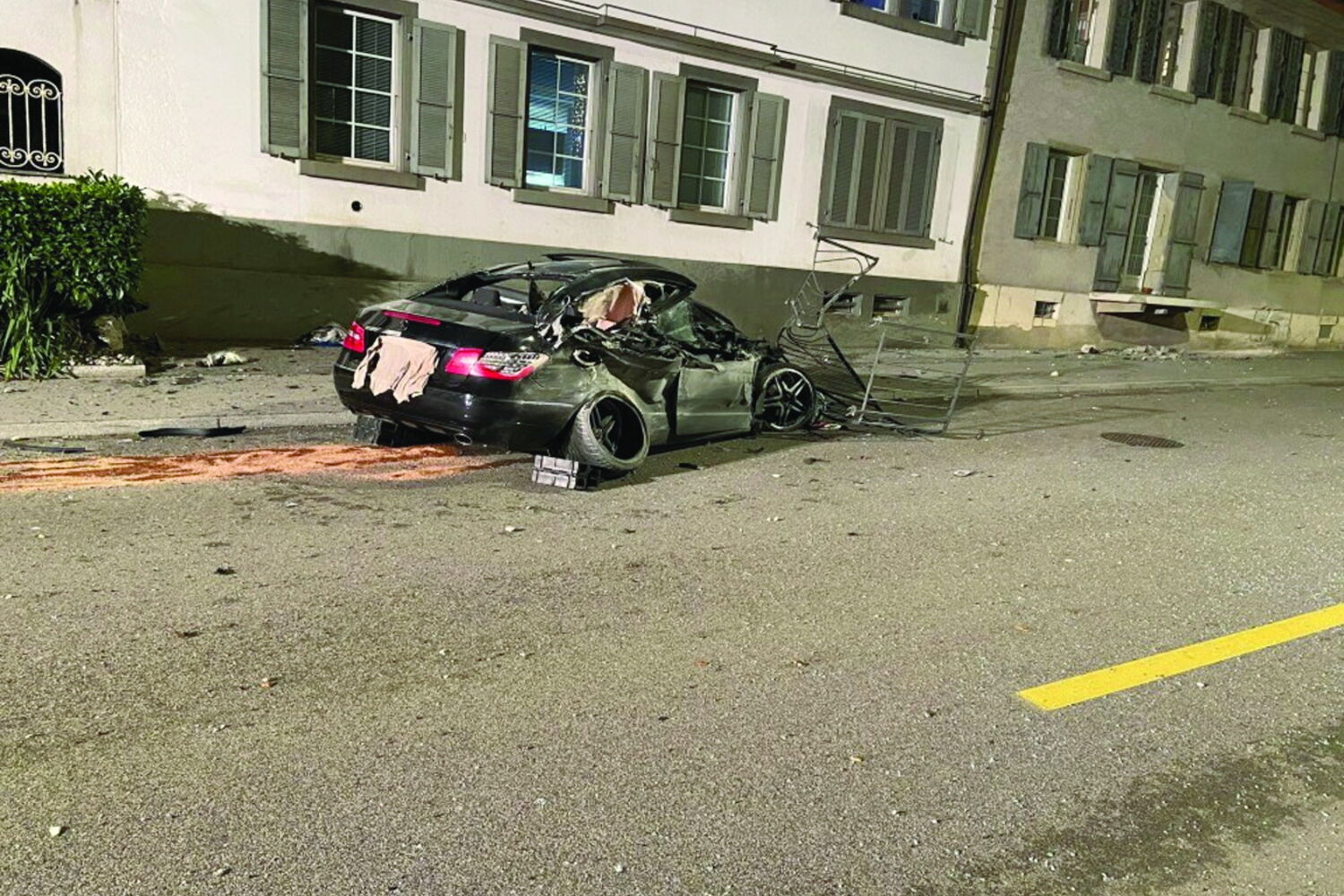 "O carro colidiu com a parede de uma casa, embateu numa escada e numa varanda, tendo sido projetado de novo para a estrada", escreveu este domingo a comunicação social suíça sobre o brutal acidente.