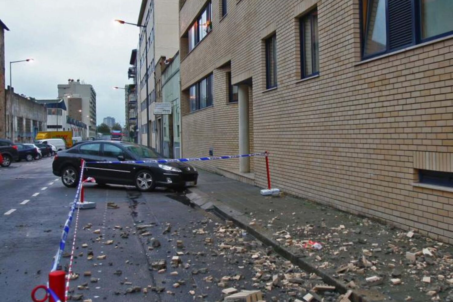 Durante a manhã, vários tijolos soltaram-se da varanda do quarto andar de um edifício na rua D. João I. Os carros que estavam estacionados mesmo por debaixo da varanda ficaram danificados e a zona de perigo foi vedada pela polícia, que marcou um perímetro de segurança. Apenas por acaso não passavam pessoas naquela rua central de Matosinhos.