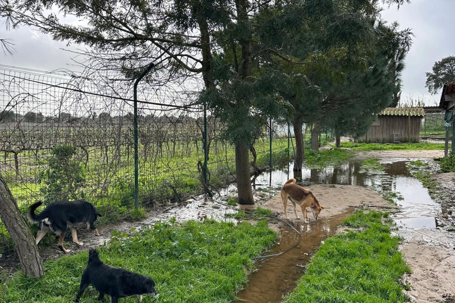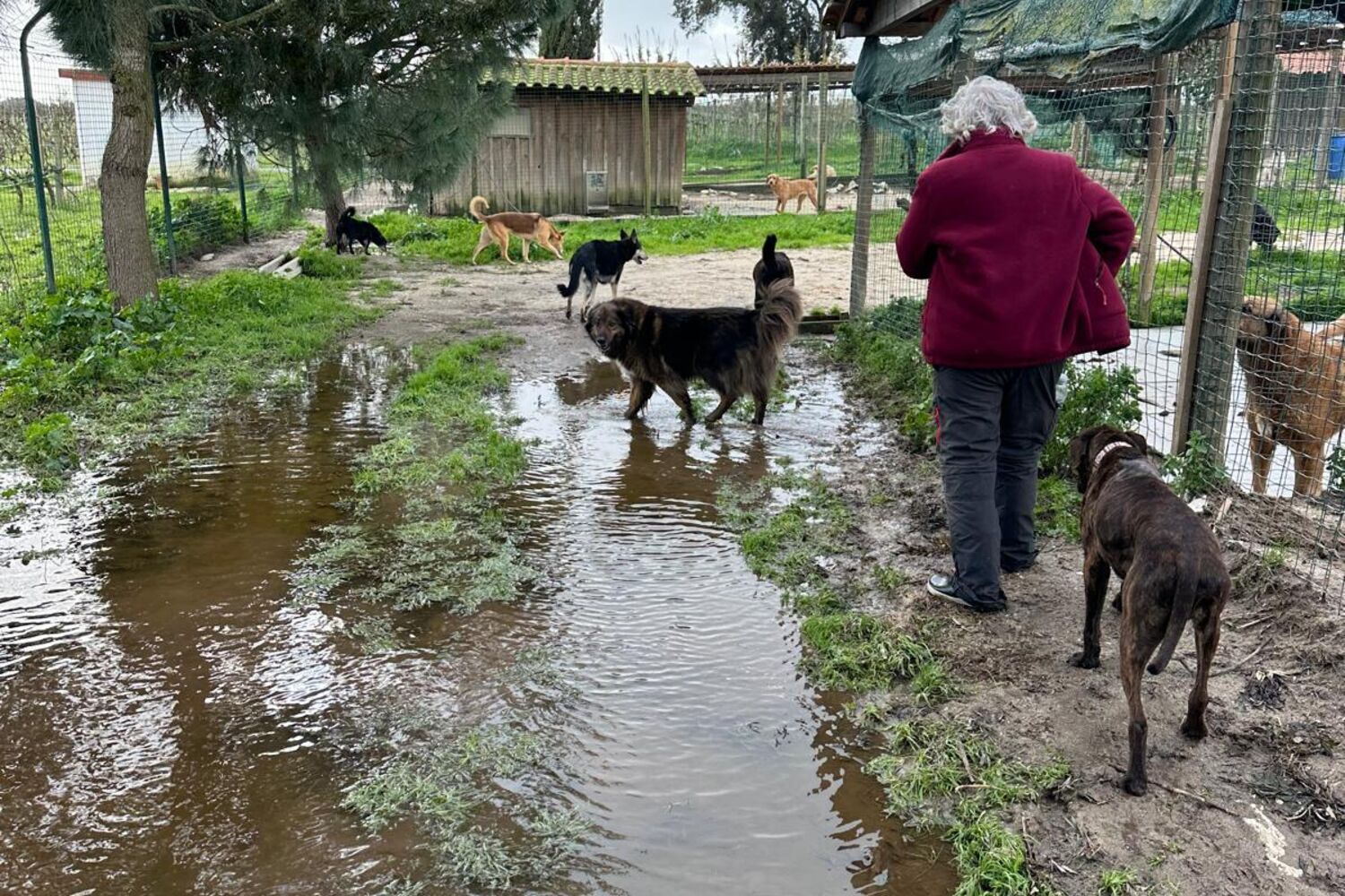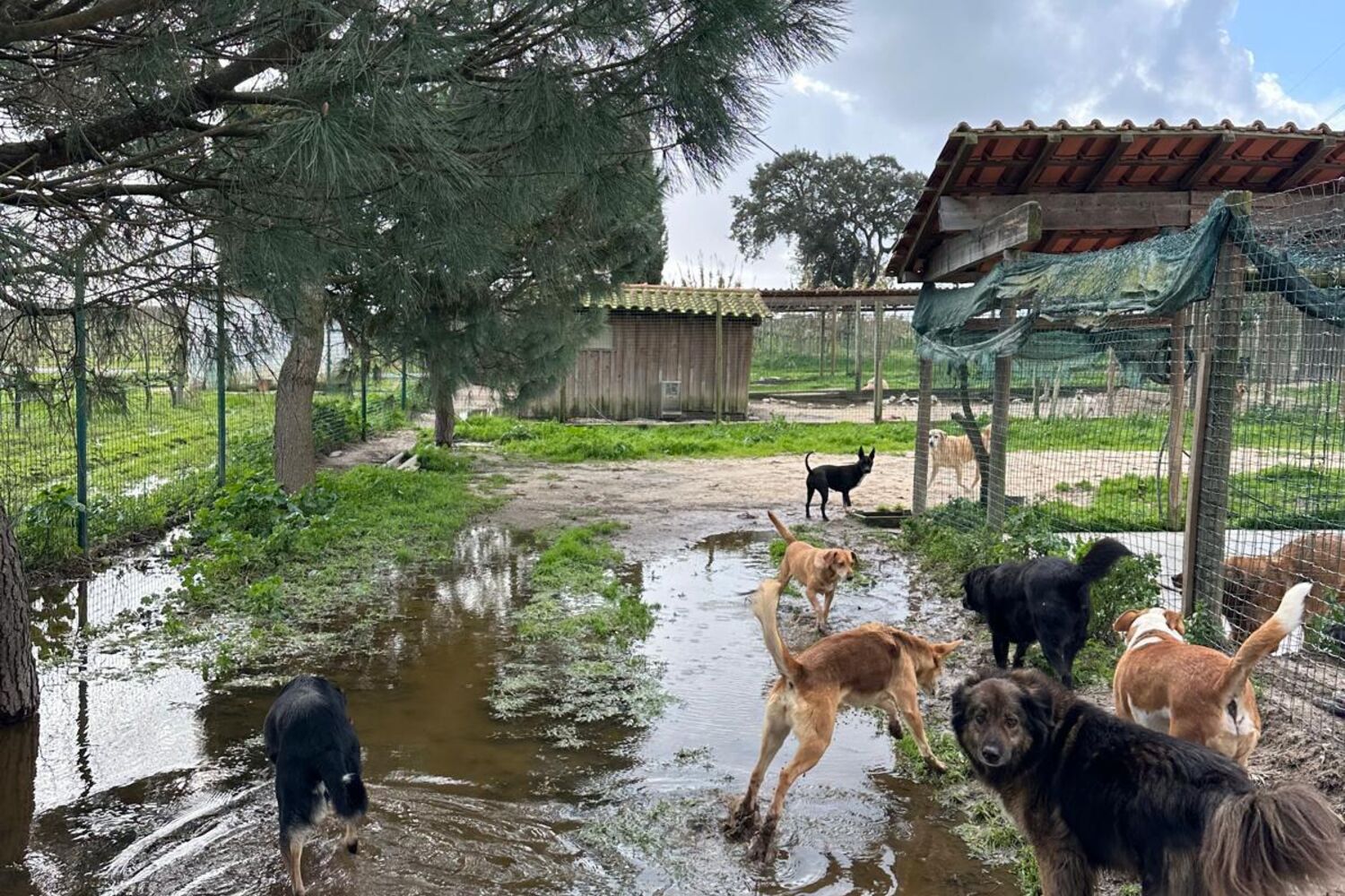 Os animais dormem diretamente no chão molhado, sem mantas e sem proteção. O cenário foi descrito ao CM como uma "emergência absoluta".