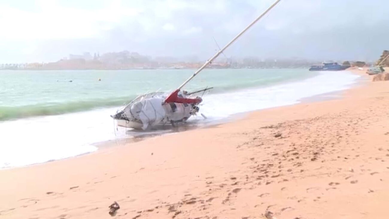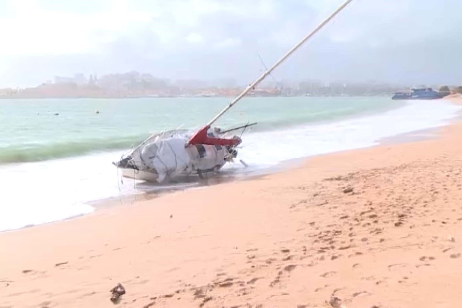 Mau tempo encalha mais um veleiro na Praia Grande em Ferragudo. Já são quatro
