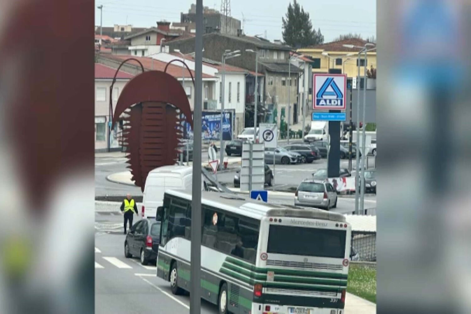 Na origem da queda da estrutura, colocada junto a uma rotunda, estará o vento forte que se faz sentir na região Norte e que deixou vários distritos, entre os quais o Porto, sob aviso amarelo.