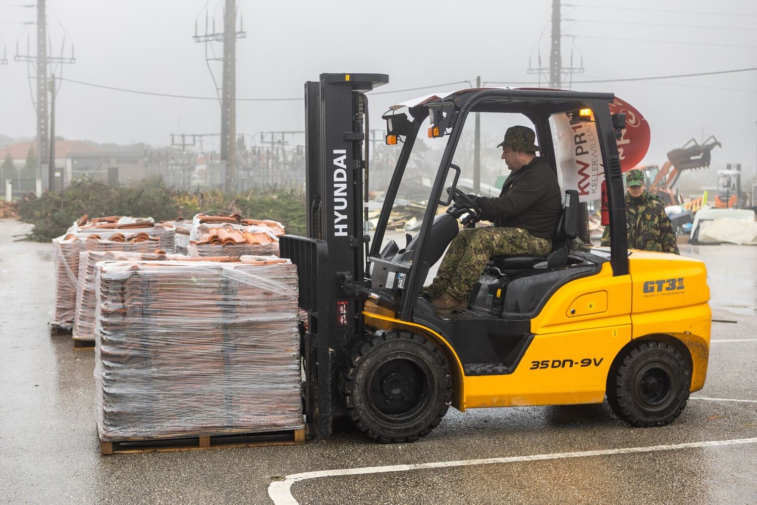 Entre as ações de recolha de bens doados, a Força Aérea indicou que um avião KC-390 descolou na terça-feira da Base Aérea N.º 4, nos Açores, com 6,3 toneladas de bens essenciais, e desde o Depósito-Geral de Material da Força Aérea, em Alverca, distrito de Lisboa, seguiram "perto de cinco toneladas" de bens por via terrestre.