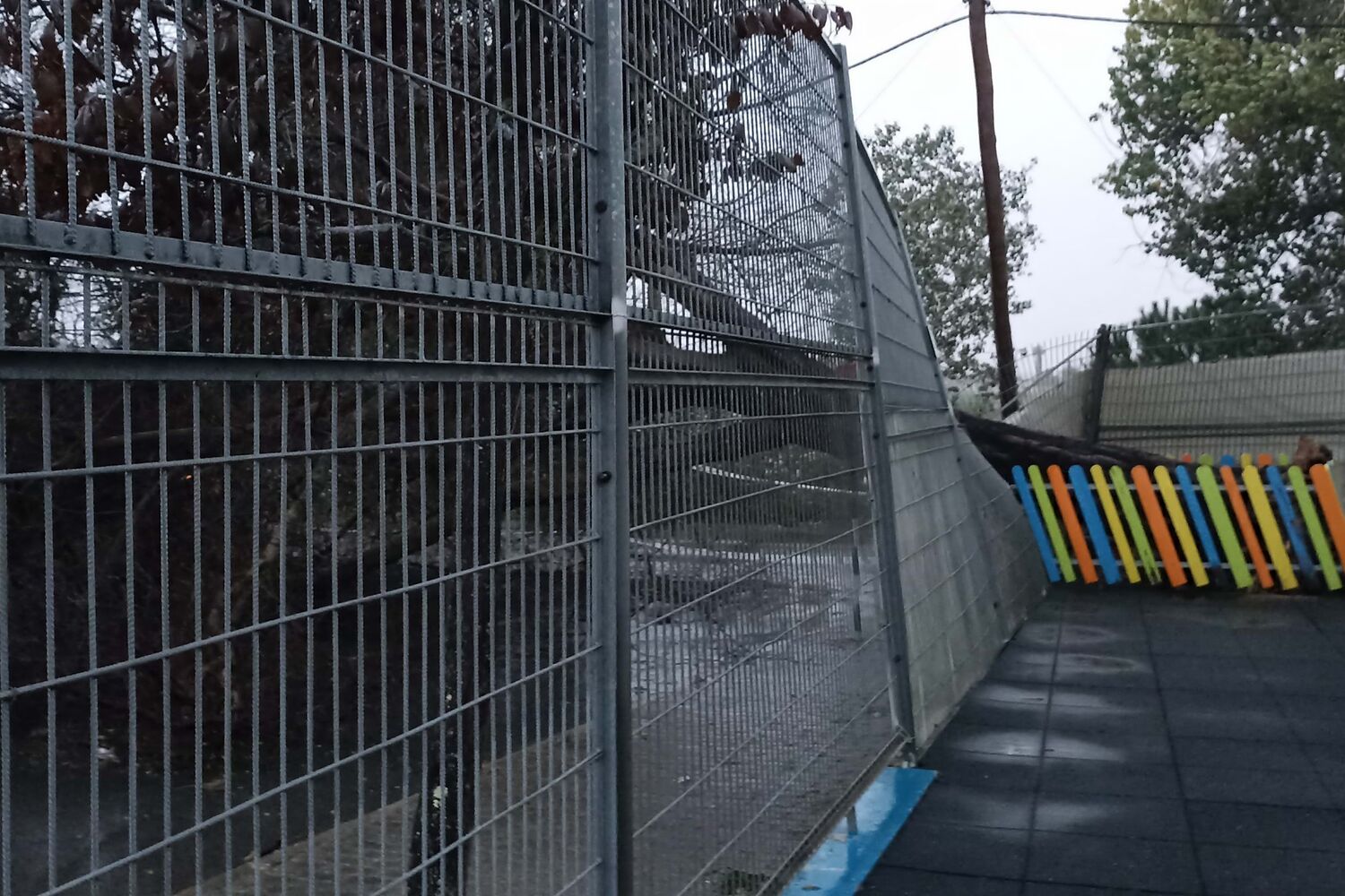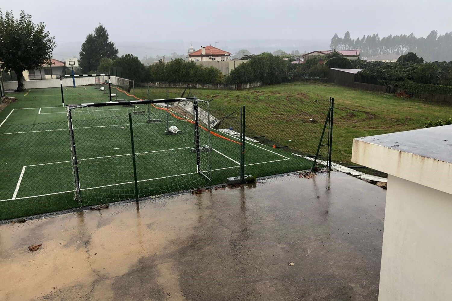 A forte intempérie, registada esta madrugada de quarta-feira, na região da Feira, provocou o colapso de um dos muros laterais de um campo de relva sintética, de uma escola básica.