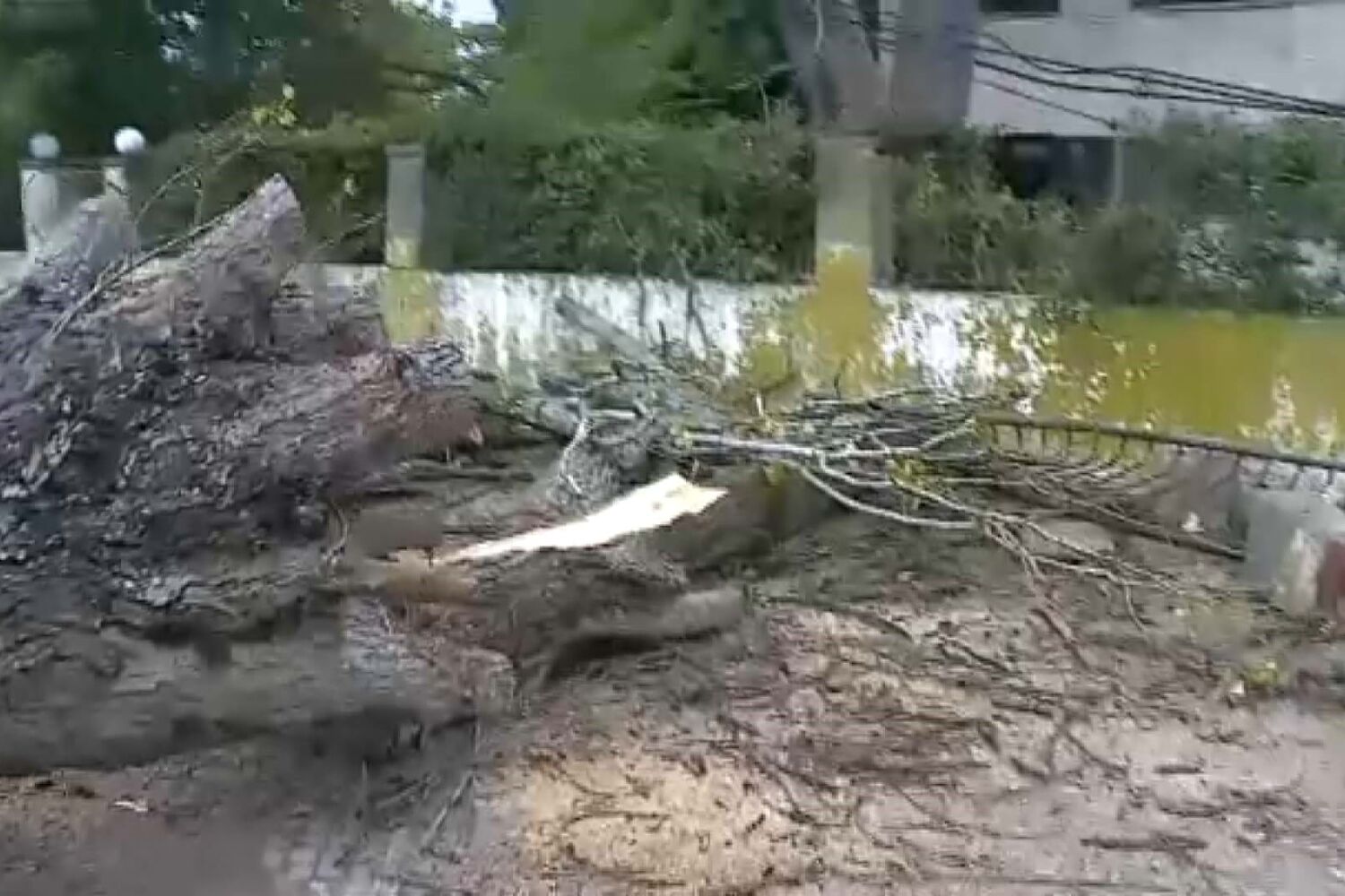 Árvore caiu sobre estrada e atinge muro de casa em Azietão