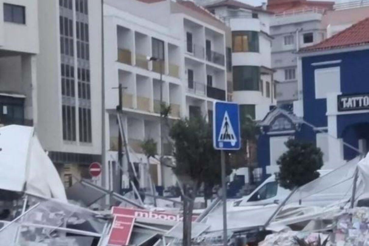 O alerta para o Serviço Municipal de Proteção Civil foi acionado às 05h22, tendo-se verificado que "as torres do andaime e chapas de cobertura, na Rua das Flores, cederam e ficaram instáveis devido ao vento registado".