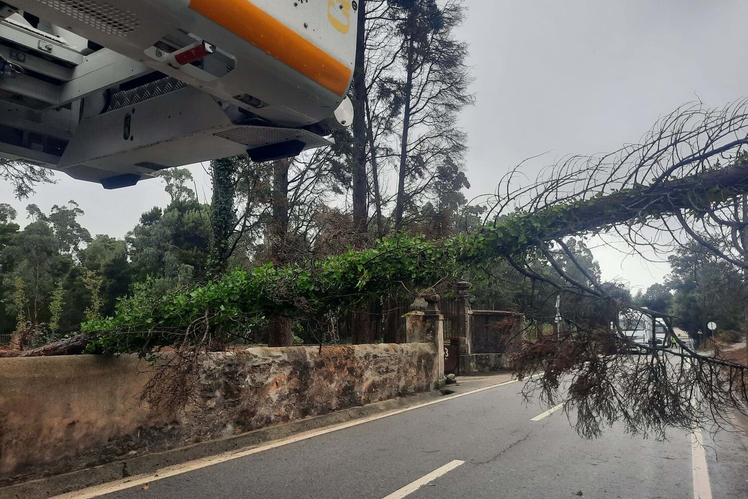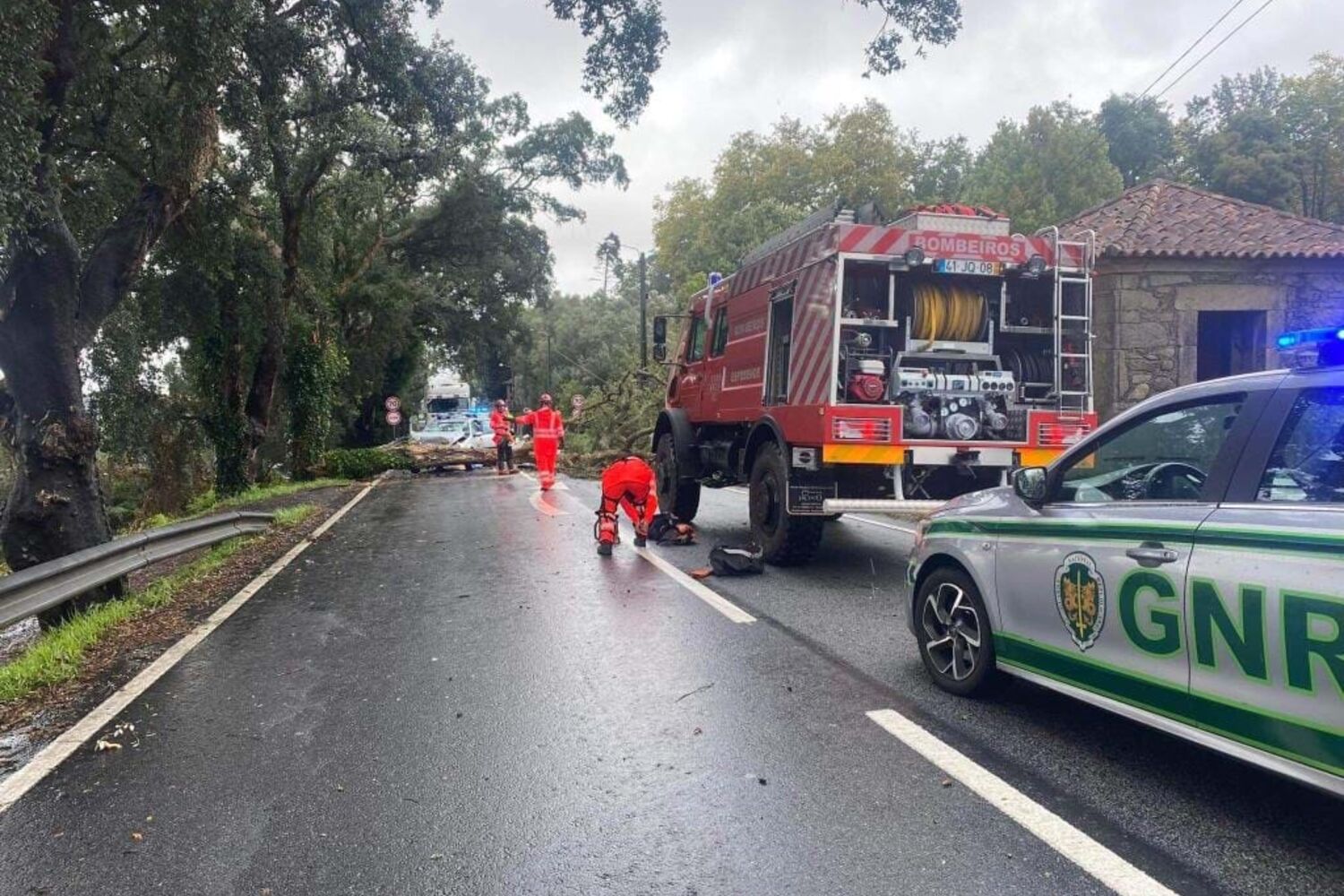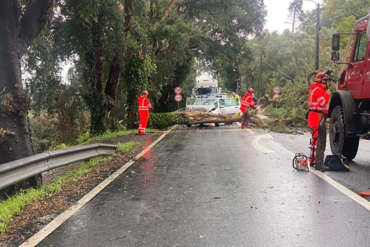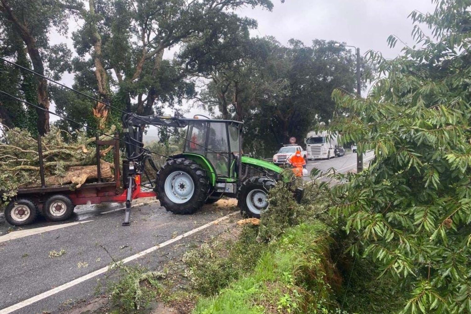 A estrada está cortada ao trânsito desde sensivelmente as 12h35, quando um ramo de uma árvore de grande porte caiu sobre a estrada que liga Barcelos e Viana do Castelo, na altura em que um automóvel passava no local. O condutor não conseguir evitar a colisão contra o tronco caído na via. Apesar dos danos no carro, o condutor não sofreu ferimentos.