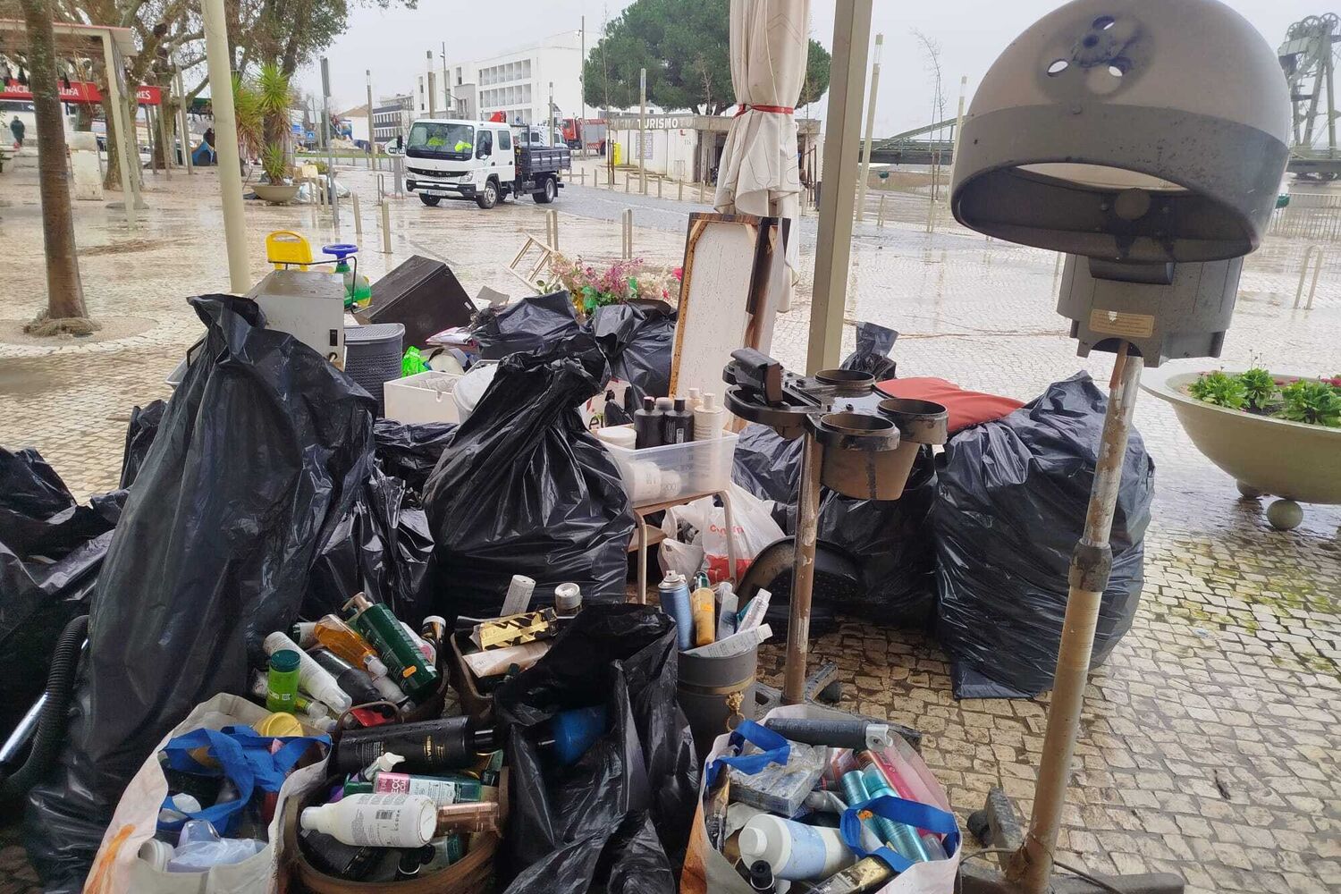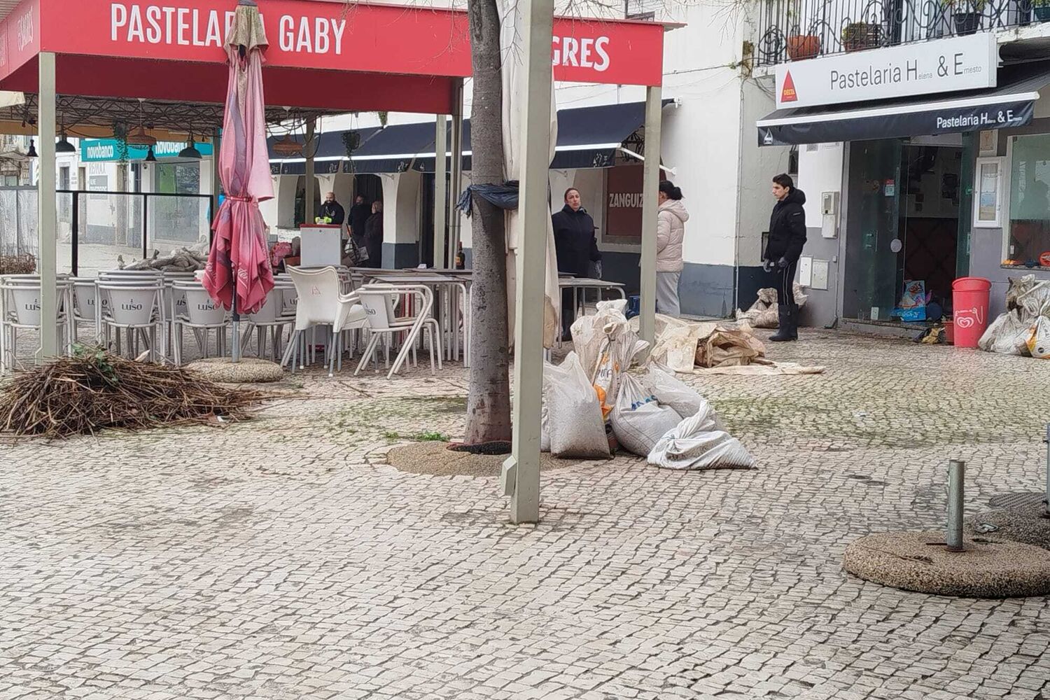 Comerciantes limpam destroços provocados pelo mau tempo em Alcácer do Sal