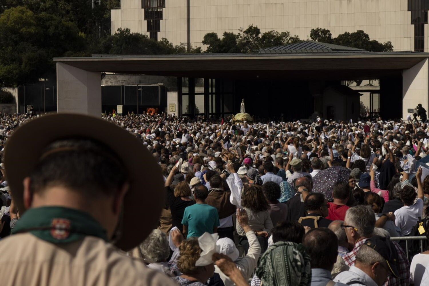 Milhares de pessoas encheram ontem o recinto do Santuário de Fátima, de lenço branco nas mãos para participarem na Procissão do Adeus, que encerrou a última peregrinação aniversária do ano, dedicada à última aparição de Nossa Senhora aos Pastorinhos, naquele que ficou conhecido como o ‘Milagre do Sol’.