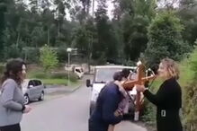 O Centro Social e Paroquial de Freiriz, em Vila Verde, foi uma das entidades que neste domingo de Páscoa deu o beijar da cruz aos utentes. O momento foi filmado e partilhado nas redes sociais.
