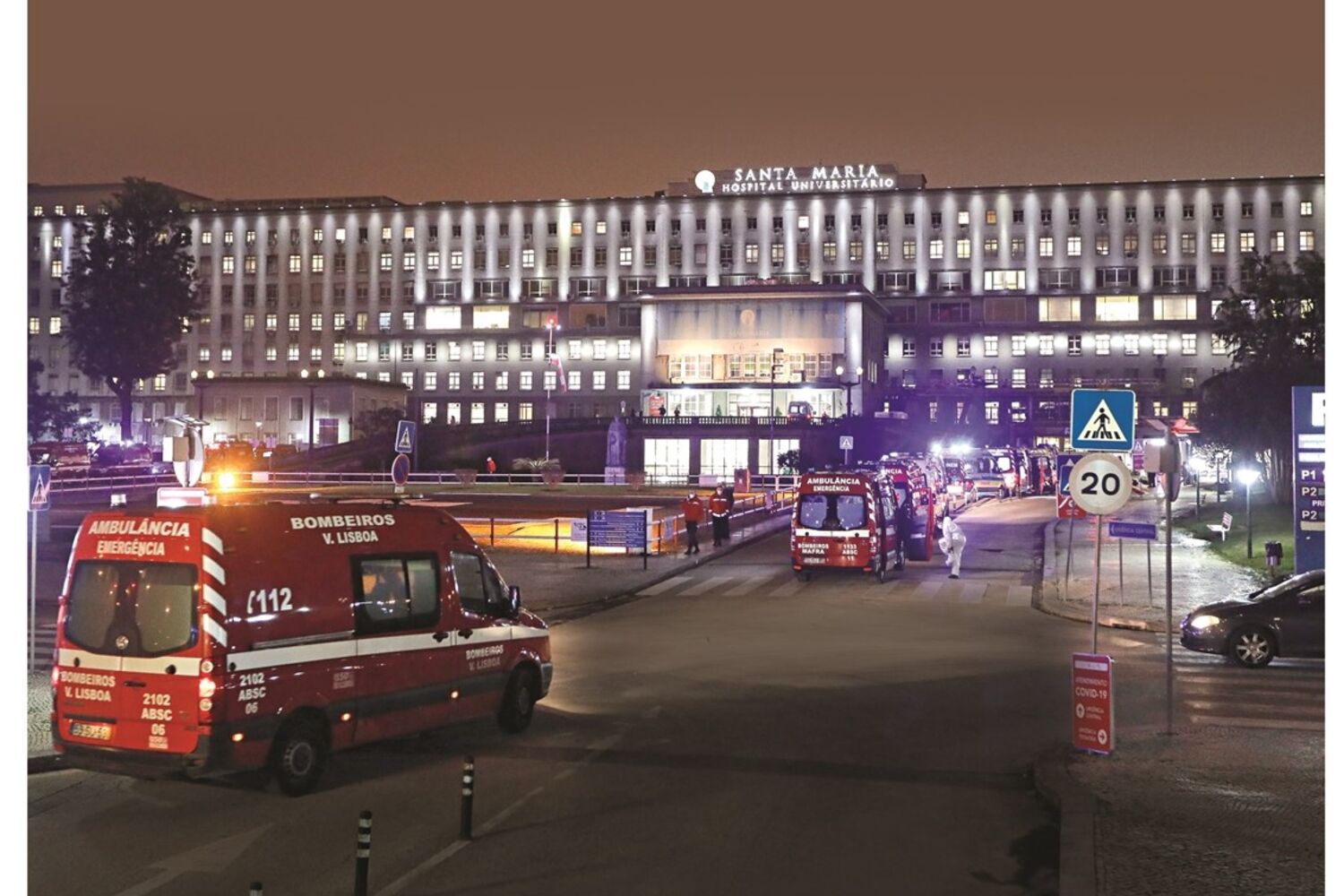 'Irmão gémeo' no Porto tem mil camas e faz 49 mil cirurgias Mil camas (15 a 20% de Cuidados Intensivos ou intermédios), 49 322 cirurgias e 810 mil consultas em 2019 são os dados do Hospital de S. João, o ‘irmão gémeo’ portuense do Santa Maria. Projetado pelo mesmo arquiteto, é idêntico ao ‘primogénito’ e tem 14 km de corredores, pelos quais passam os cerca de 6600 trabalhadores (300 externos), incluindo quase 1500 médicos e 2400 enfermeiros, que oferecem 50 serviços clínicos. O edifício, inaugurado em 1959, no dia do santo que lhe dá o nome, é o polo principal do Centro Hospitalar Universitário de S. João - que integra o hospital de Valongo - e acolhe a Faculdade de Medicina da Universidade do Porto. Menos pressionado nas últimas semanas, tem acolhido dezenas de doentes Covid de outras unidades hospitalares.