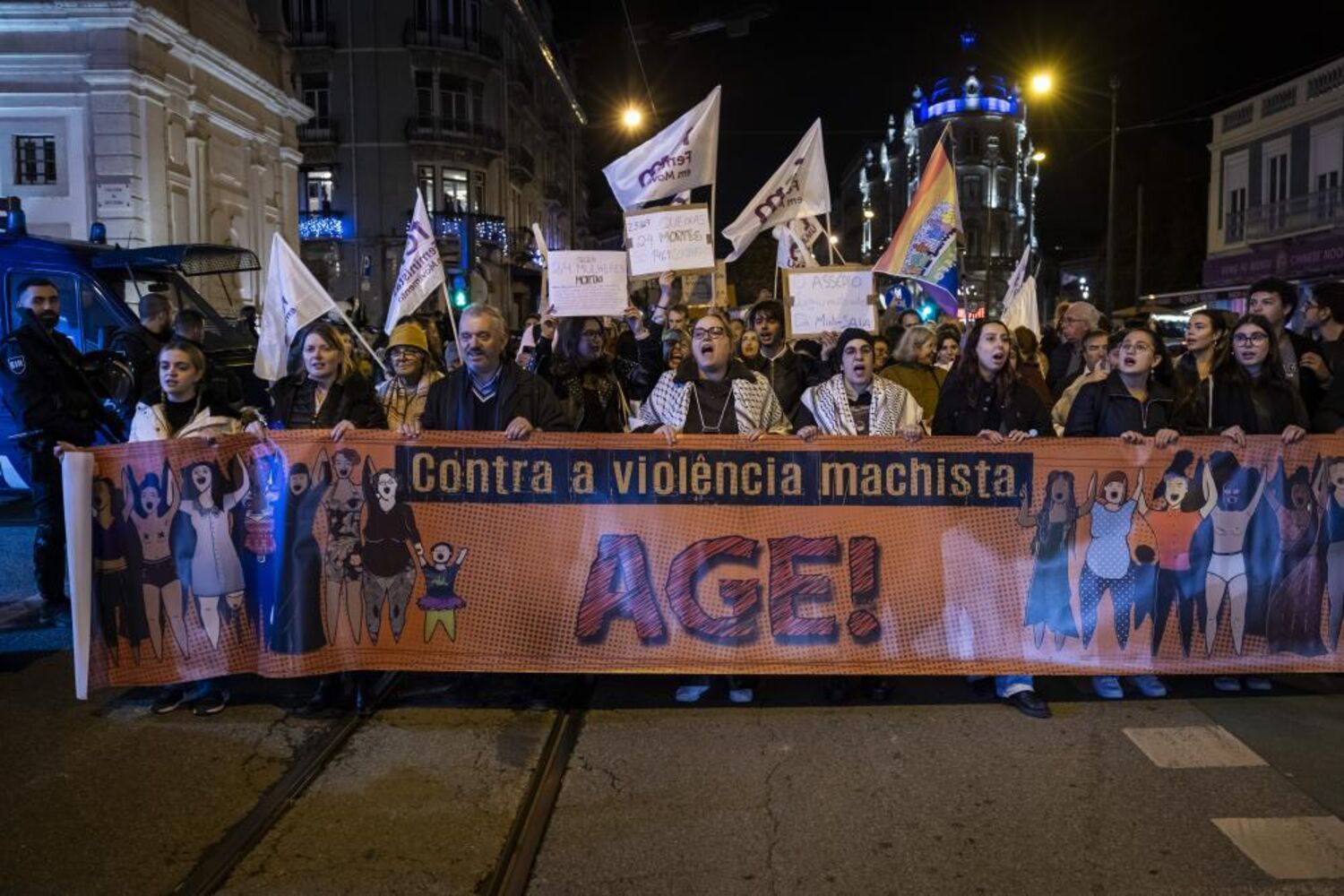 A marcha, com a presença de homens e mulheres de todas as idades, começou cerca das 19:00 para assinalar o Dia Internacional para a Eliminação da Violência contra as Mulheres, com concentração no Largo do Intendente.