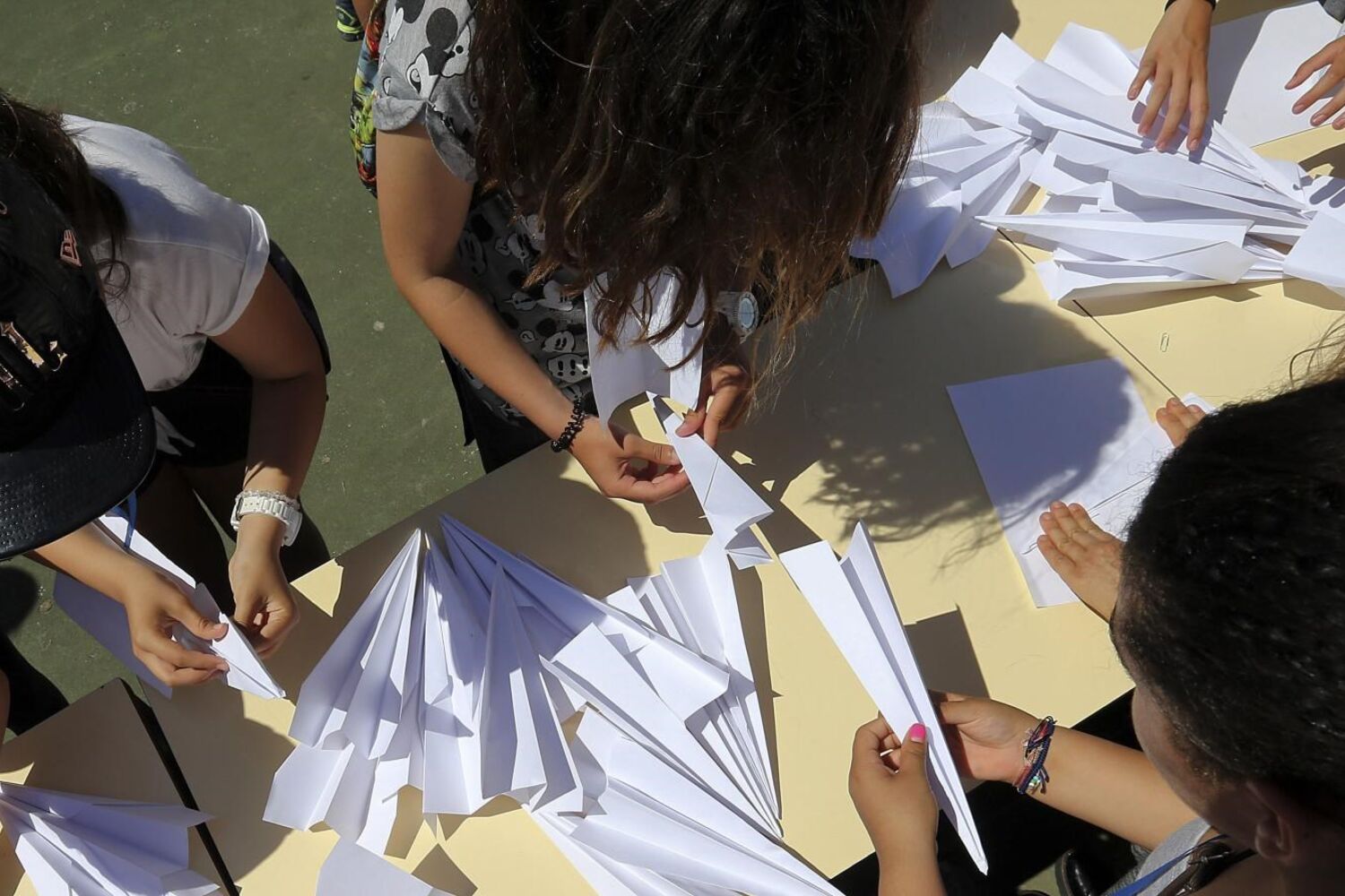 Cada um dos jovens, que frequenta entre o 5.º e o 9.º ano de escolaridade, recebeu cinco folhas e tinha como objetivo conseguir fazer entre três e cinco aviões de papel sem qualquer defeito, para pudessem ser válidos para a contagem final.
