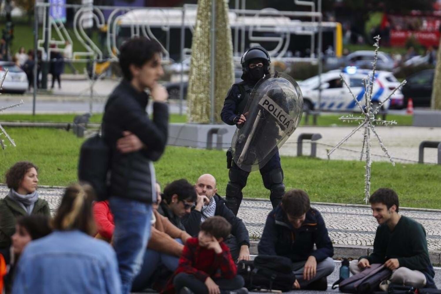 Apesar de a manifestação não ter juntado mais de 70 pessoas, teve direito a ser acompanhada por um dispositivo policial numeroso, com várias dezenas de agentes, alguns das equipas de intervenção rápida da Polícia de Segurança Pública, divididos entre os que acompanhavam a pé, os que seguiam de moto ou ainda os que se faziam transportar nas carrinhas.