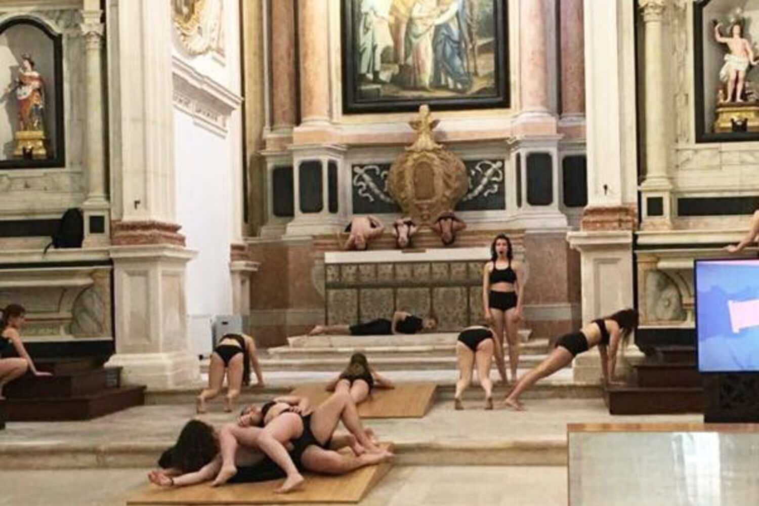 Na internet surgiram várias críticas de pessoas indignadac com o espetáculo que caracterizam como "uma dança como sensual", considerada ilegítima naquele espaço. No blogue 'Senzapagare', por exemplo, é dito ainda que as fotografias "escandalizaram os fiéis e é-lhes devida uma explicação e uma reparação do mal feito."