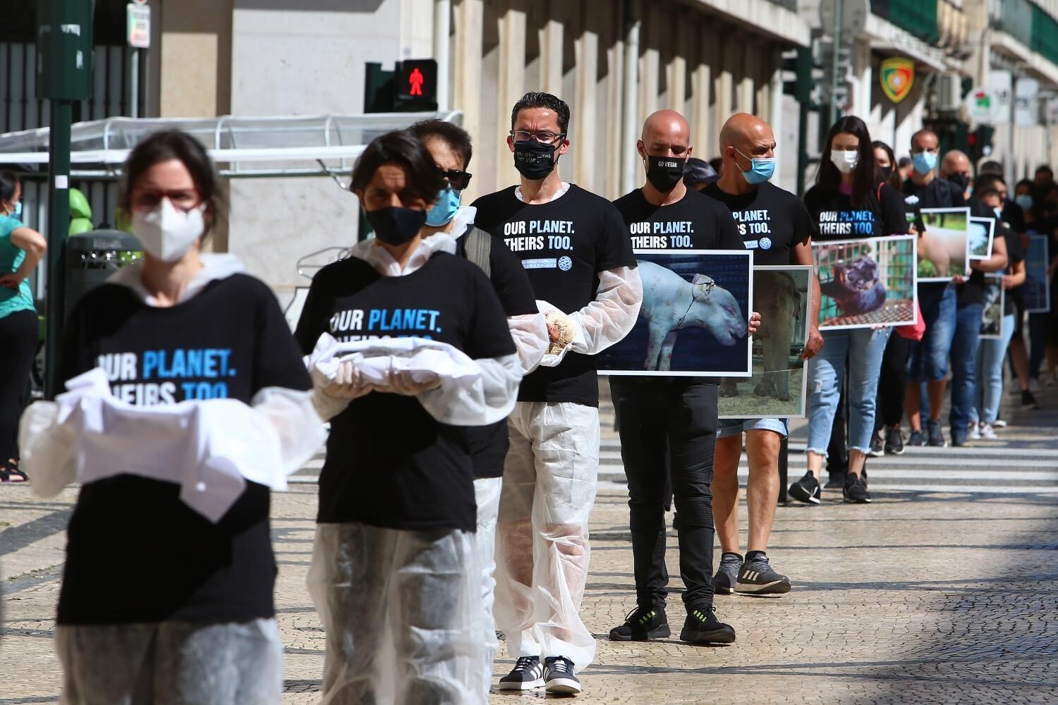 Cerca de uma centena de manifestantes participaram hoje numa "marcha fúnebre" em defesa dos direitos dos animais, uma iniciativa que decorre anualmente por todo o mundo e que em Portugal se realizou pela primeira vez, em Lisboa.