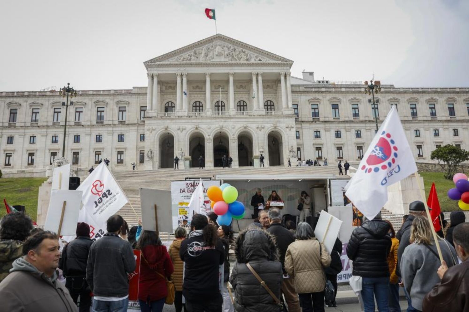 "A igualdade que Abril abriu, reforçar direitos, cumprir a constituição" lia-se na faixa que encimava a manifestação à saída do Largo de Camões em direção ao parlamento.