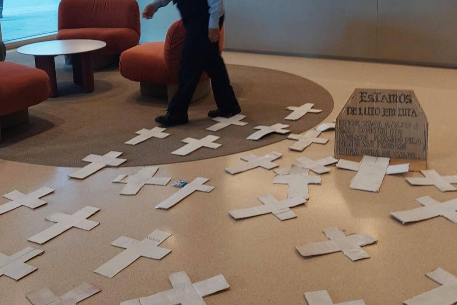O Climáximo entrou, esta quarta-feira, na sede da Galp e colocou 284 cruzes no átrio de entrada para "denunciar a culpa" da empresa petrolífera "na onda de calor que assolou Portugal entre o final de Junho e o início de Julho".