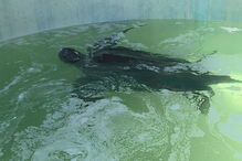 Esta curiosa tartaruga de couro de cerca de 300 quilos e aproximadamente dois metros de comprimento ainda não foi vista a alimentar-se. Em agosto, quando forem reunidas todas as condições que garantam a sobrevivência do animal, a tartaruga poderá regressar ao seu habitat natural.