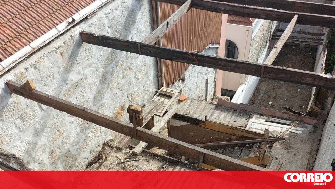 Os trabalhos de retirada de entulho decorreram com recurso a um camião-grua. A rua esteve cortada ao trânsito, mas já foi reaberta.