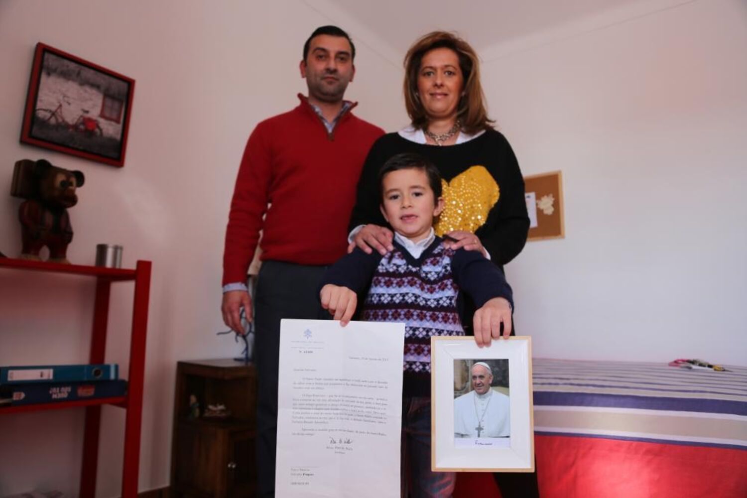 Salvador, de apenas seis anos, nem queria acreditar quando na segunda-feira recebeu do papa Francisco uma carta e uma fotografia em agradecimento a um desenho entregue em outubro. "Quando me deram a carta, fechei os olhos emocionado", recorda o menino, que, tal como os pais e a irmã, carrega uma imensa fé. O gesto do santo padre deixou comovida esta família de Arraiolos e veio alimentar um sonho desta criança. "O que mais quero é ser padre. Gostava de ir ter com o papa Francisco para ele me pegar ao colo", disse.