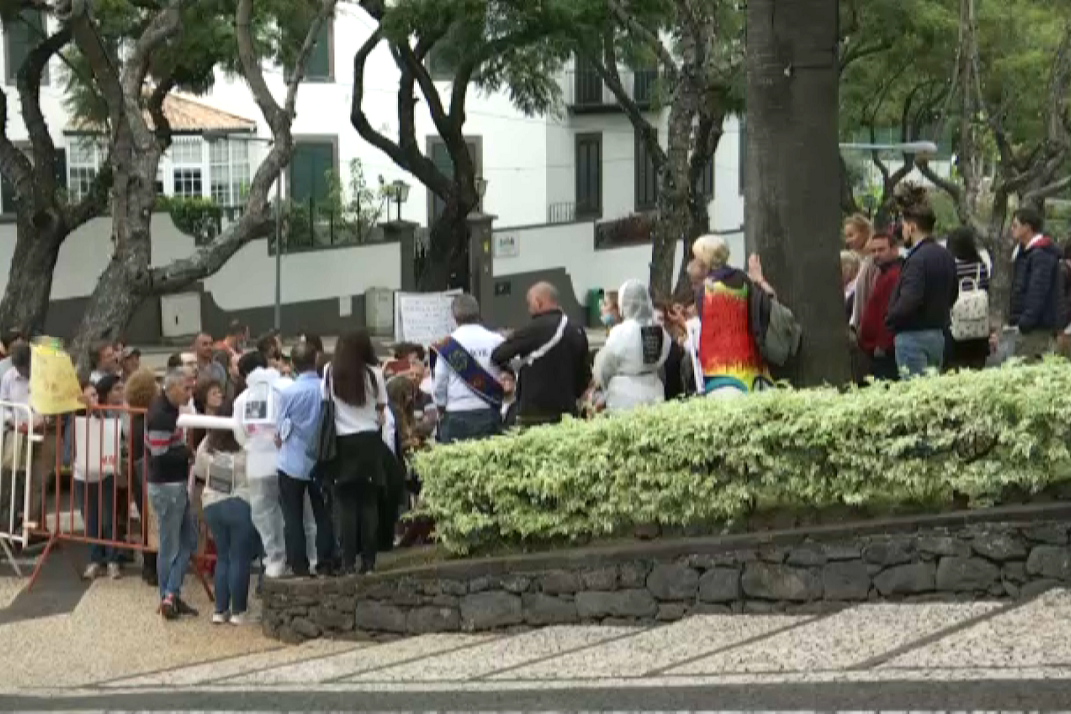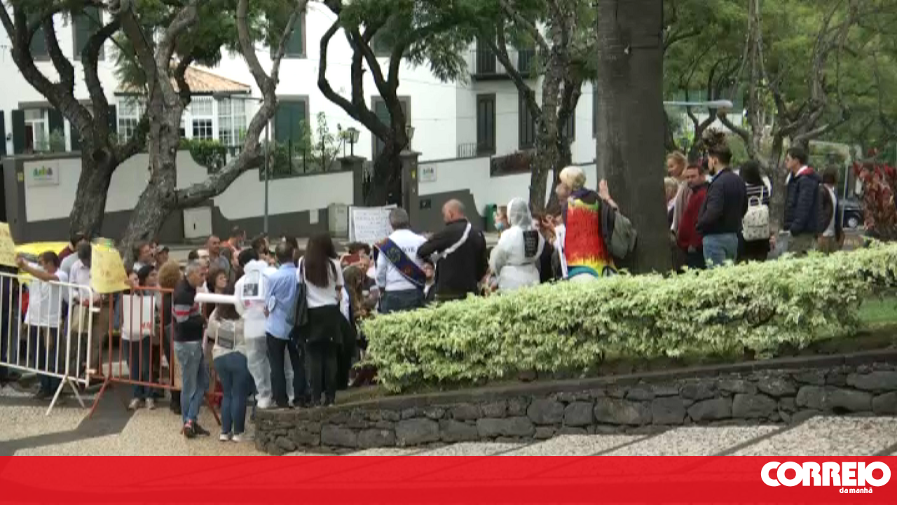 Os manifestantes concentraram-se à entrada da Quinta Vigia num momento em que decorria a reunião semanal do Conselho do Governo Regional.
