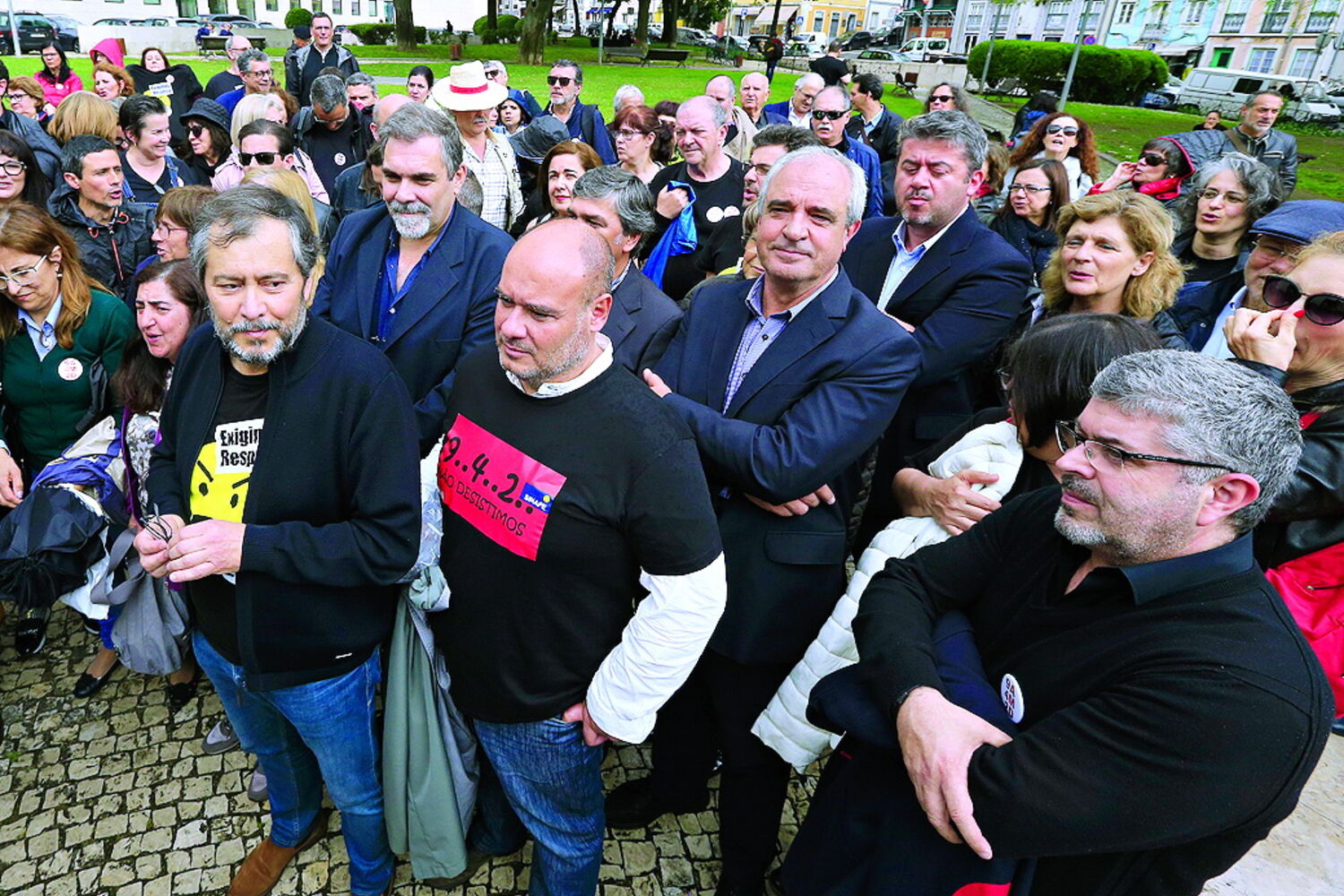 "Basta de congelamento, queremos o nosso aumento", exigiram os manifestantes, entre os quais professores, num protesto desde o Marquês de Pombal até à residência oficial do primeiro-ministro, António Costa, em São Bento.