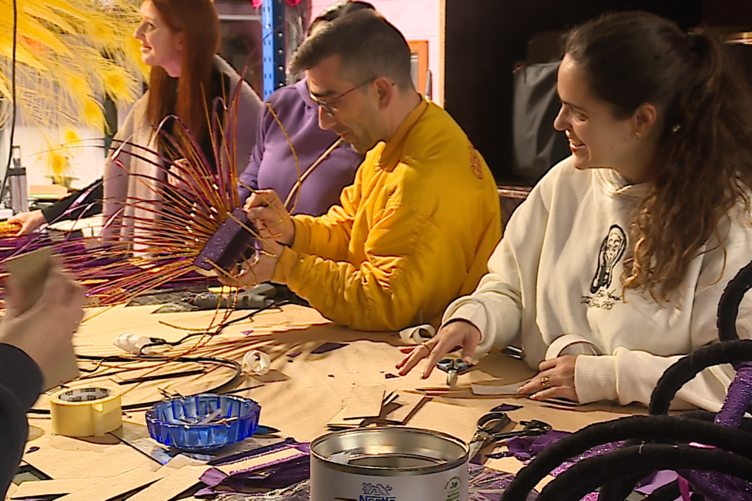No Carnaval, a união faz a força e dos ensaiadores aos ritmistas, todos contribuem para a “noite mágica”. Bernardete Mourão é a responsável pelos adereços. “Tentamos transpor para a realidade o que está no desenho. Há cabeças que faço numa hora e outras que levam três dias”, explica a vareira. Já os ensaiadores são responsáveis pelas coreografias. “Passamos aqui muitas horas. Temos de idealizar a coreografia, [perceber] que passo fica bem e que pessoas se enquadram na música”, conta Rafaela Pinto, da Escola de Samba Charanguinha, que desfila desde que estava na barriga da mãe.