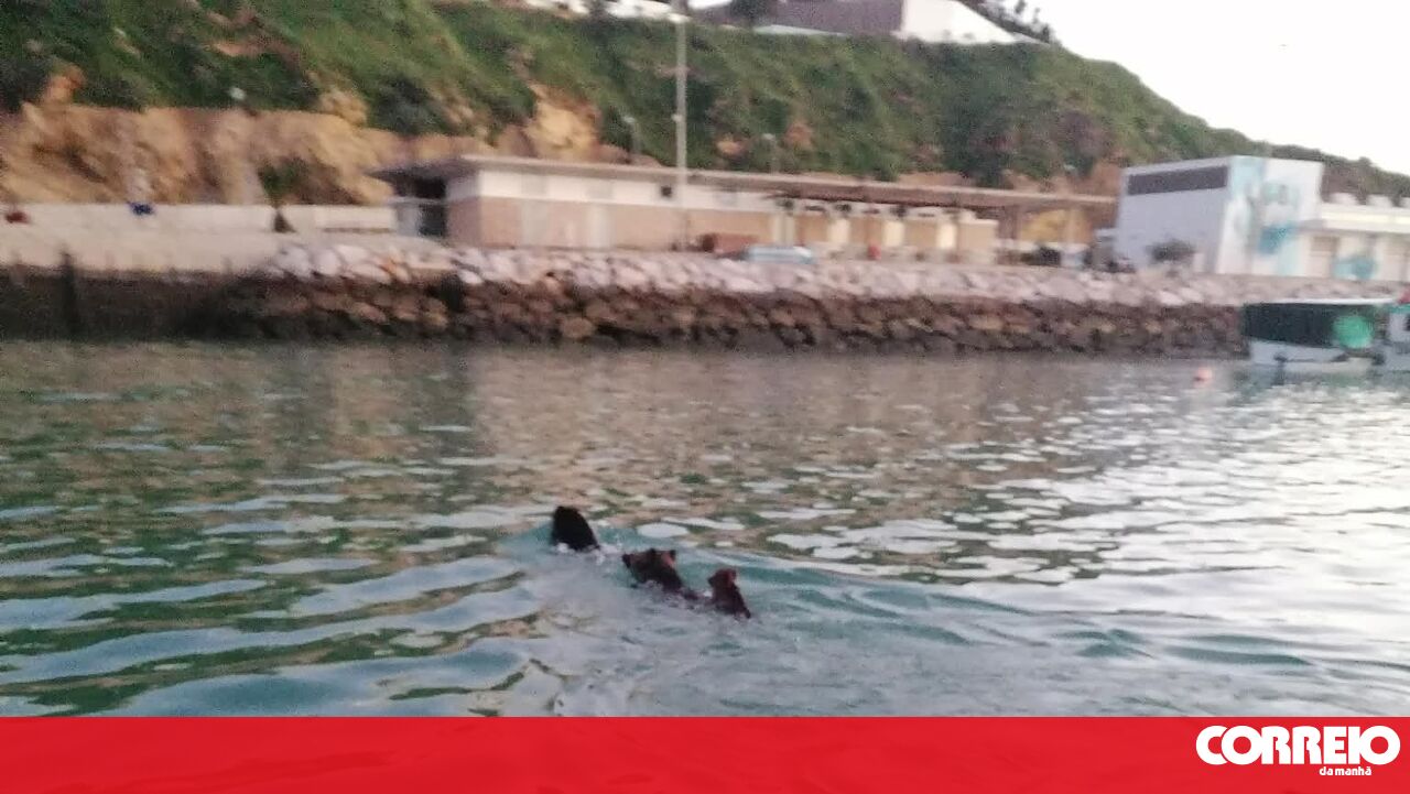Animais foram fotografados por pescadores a nadar junto ao porto de recreio.