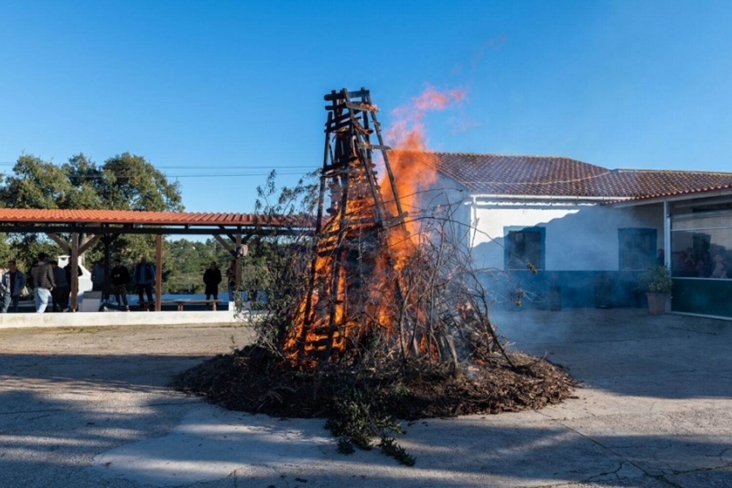 Chouriça assada, música com artistas da terra e partilha de histórias à volta da fogueira.